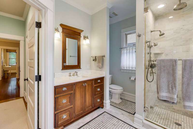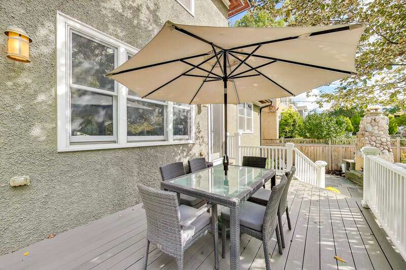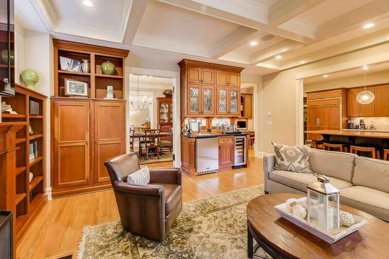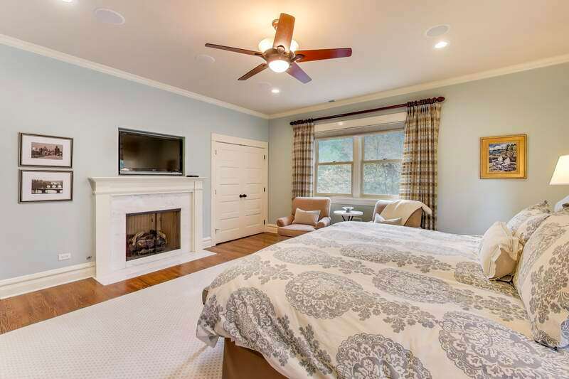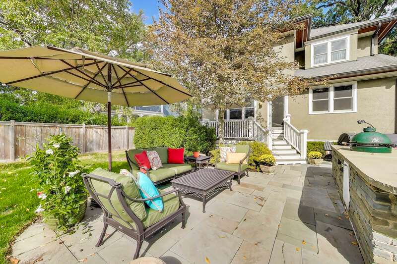 Quintessential East Wilmette home with great front porch, spacious lot (50 x 189), and rooms in all the right spaces for today's living on a tree lined street! This gorgeous 5-bedroom, 5.1 bathroom property had a full expansion renovation, with a three-story addition and dug out basement in 2008, plus new improvements. The inviting front porch welcomes you into the foyer where you will notice beautiful millwork, hardwood floors, tall ceilings, and sun filled rooms. Formal living room features lovely windows, an updated gas fireplace that opens to formal dining room with leaded glass windows. Dining area is open to the kitchen and family room, perfect for entertaining a crowd. Oversized chef's kitchen with custom cabinets, newer quartzite countertops, two sinks, Wolf oven and a half & range, SubZero refrigerator/freezer, one beverage door, one freezer drawer, walk-in pantry, control zone and large island! Kitchen opens to the family room with a wood burning fireplace, flanked by custom bookshelves, plus an additional entertainment area with a wine fridge and kegerator. South facing back of the home, overlooks the backyard - included a deck with trex-like decking, two bluestone patio areas, built in grill/plus green egg and fireplace. Dedicated office with loads of built ins and beautiful powder room finishes the first floor. The second-floor features primary suite with a fireplace in the bedroom, huge bathroom with his and her vanities, steam shower, radiant floors, soaking bubble tub, plus two spacious walk-in closets and a linen closet. Additional stackable laundry is on the floor. Three additional, generous-sized bedrooms are off the second floor landing, including an en-suite and hall bath. Third floor offers an additional bedroom, with an ensuite bathroom and a walk-in closet. Bonus space for an additional sitting room/office, plus storage finishes the floor. You won't be disappointed with the dug out basement, features a fabulous rec room, exercise room, 300+ temperature controlled wine celler, mudroom, laundry room and TONS of storage areas. Landscaped back yard with a bluestone walkway. Two car garage, plus a parking pad. Can't beat this walkable location to Central Elementary, town, Metra train, shops, Plaza Del Lago, and the beach!