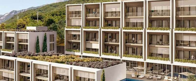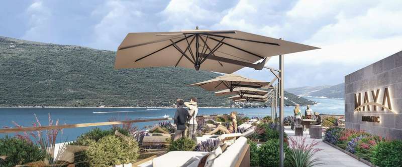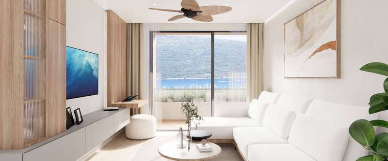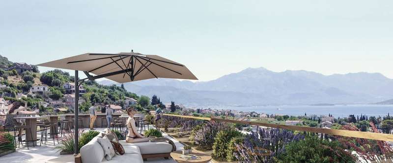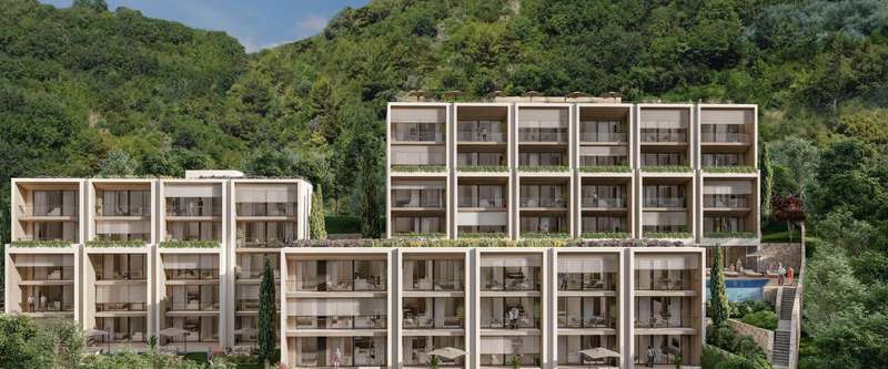 These modern one-bedroom apartments are located in the Maya Adriatic residential complex in Kumbor at the entrance of the Bay of Boka. The complex is in the embrace of the sun and sea, away from the city noise and bustle, close to the famous Portonovi residential area and luxury yacht marina. This complex impresses with its peaceful atmosphere, stunning natural beauty, and crystal-clear water. Unspoiled beaches and panoramic views of the Bay of Kotor create ideal conditions for vacation and accommodation.