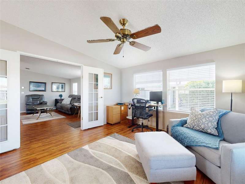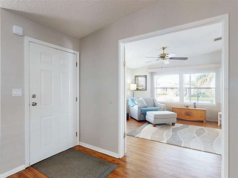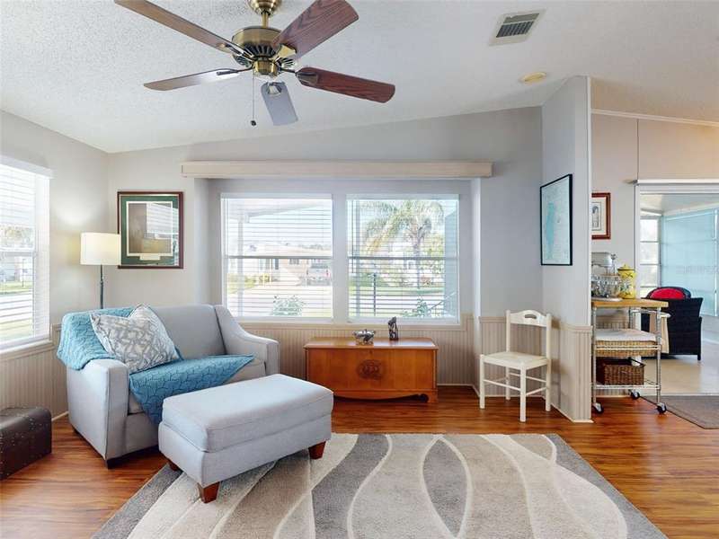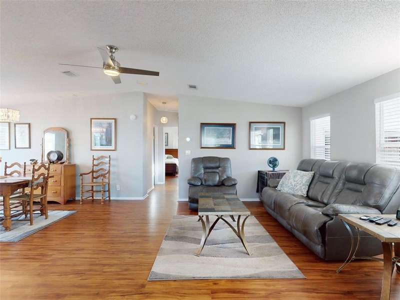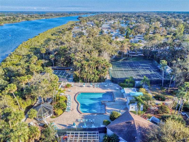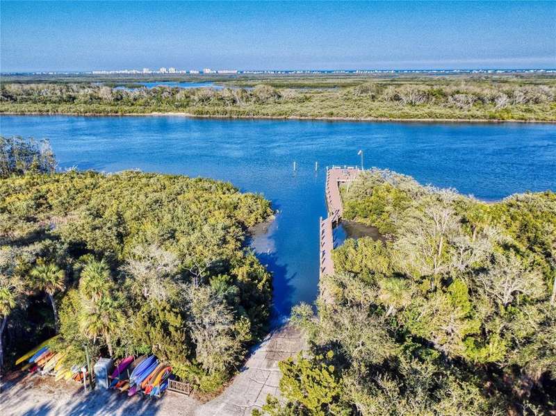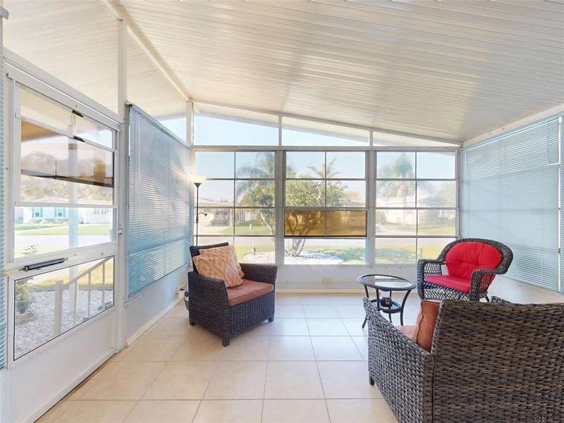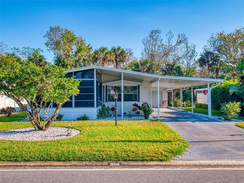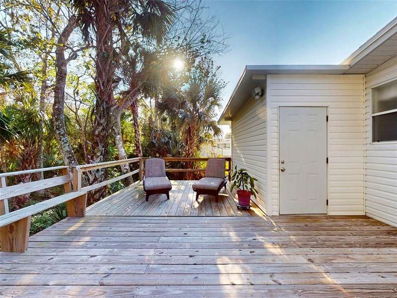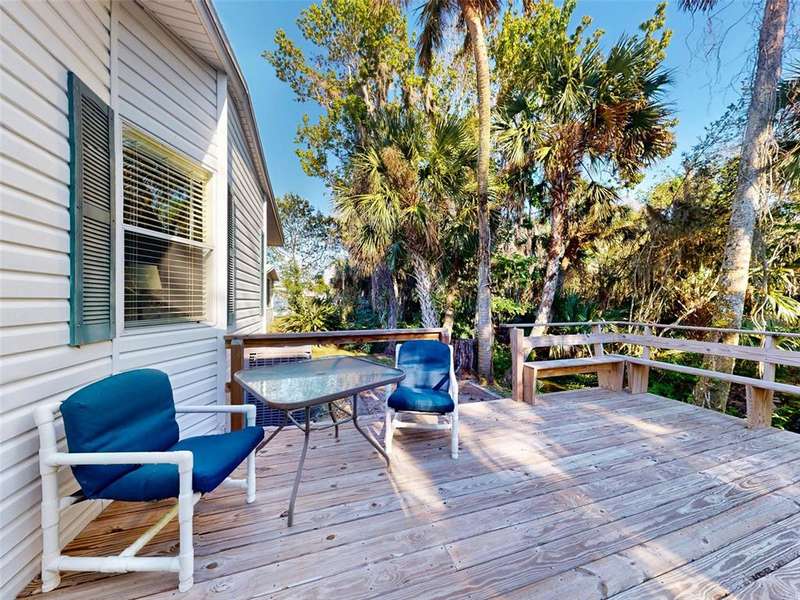 GARAGE/WORKSHOP - FLORIDA ROOM - BACKYARD DECK - NEW ROOF & A/C - Step into this beautifully maintained, furnished 2-bedroom, 2-bathroom home where modern comfort meets serene privacy. Recent updates include a new roof and hot water heater (2021) and A/C system (2022), ensuring worry-free living for years to come. The home’s neutral décor sets a calm, welcoming tone throughout the bright, open-concept living and dining areas—perfect for both quiet evenings and lively gatherings. The large kitchen boasts durable solid surface countertops, while the Florida room provides a tranquil retreat, connecting you with the natural beauty outside. Step out to your new backyard deck—a peaceful oasis to enjoy morning coffee or unwind as the sun sets amid Florida’s lush landscape. An additional 686 sq. ft. enhances the property’s versatility, between a garage/workshop and the backyard deck, perfect for hobbies, storage and outdoor enjoyment. Just a short walk from your door, access the private boat ramp with direct Intracoastal Waterway entry. Edgewater Landing residents enjoy top-notch amenities including pool & hot tub, sports courts, on-site boat & RV storage and a brand new clubhouse and fitness center currently under construction! With a low HOA fee that includes cable and internet, this gem offers peace of mind and value in equal measure. All this convenience is just 5 minutes from Publix and nearby shopping, dining, and retail, with beautiful New Smyrna Beach just a short drive away.