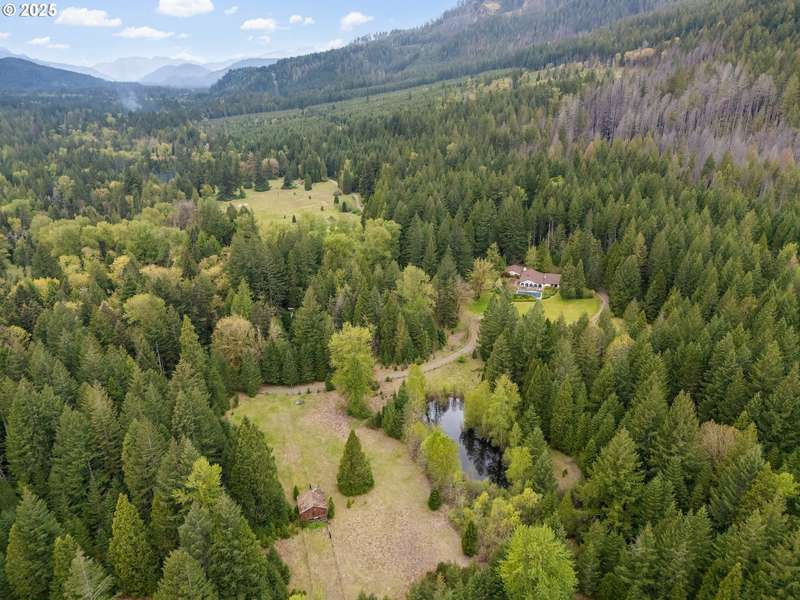 LUXURIOUS SECLUSION — 35 Forested Acres in the Pristine Western CascadesEscape to your own private haven in the Heart of McKenzie River Recreation. Enticing new price for this rare income producing property offering unmatched tranquility, surrounded by old-growth forest and endless adventure. As you enter, drive past seasonal creek, pond & barn (option for livestock). The circular drive leads you to the Mediterranean-style home, where an elegant outdoor Heated Pool awaits—offering a serene retreat for peaceful gatherings. YEAR-ROUND / VACATION HOME / SHORT-TERM RENTAL / EVENT VENUE. Includes 2 tax lots providing an option to build 2nd home for family w/hardship permit or Estate Caretaker. Buyer to do their own due diligence. Spacious PRIMARY SUITE steps out to the jacuzzi, covered patio & pool. Plus 3 uniquely designed bedrooms. GOURMET KITCHEN servicing patio dining, formal dining room with Large island for gathering & easy preparation. Spacious ENTERTAINMENT ROOM thoughtfully designed for comfort & style. Furnishings are negotiable. OUTDOOR LIVING - Enjoy evenings by the cozy fire pit, cool off in the pool or soak in the jacuzzi. The sweeping lawn reveals awe-inspiring views - inviting deep relaxation & a renewed sense of calm. Walking distance to McKenzie River. ADVENTURES include Award-winning Tokatee Golf Club, Kayaking, Drift-Boat Guided Fishing & Rafting. Hike or mountain bike the many trails. Pool maintenance & catering prep rooms are connected to the garage for events. A once-in-a-lifetime opportunity to live surrounded by Oregon's unmatched beauty of natural landscape. Option for forestry tax deferral. Call for more details and to arrange your private or online tour today!