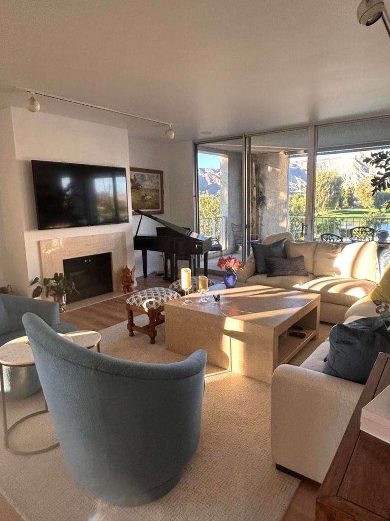 This exceptional corner unit offers stunning south and west-facing views of both the mountains and lake. A rare three-bedroom layout enhances flexibility and comfort. This residence features a spacious, modernized kitchen with granite countertops and ample storage. Main bathroom features large soaking tub and modern bidet. Elegant wood-look flooring along with custom lighting and electric window shades contribute to a refined interior atmosphere. The generous covered terrace is finished with stamped concrete and includes a gas jet for a BBQ, making it ideal for entertaining while enjoying impressive vistas.Desert Island stands as a distinctive high-rise condominium community on a lush, 25-acre private island encircled by a sparkling lake and a lush green 18-hole championship golf course. Residents have access to beautifully landscaped park-like grounds with walking paths, fruit trees, seating areas, tennis and pickleball courts, heated swimming pools and spas, pedal boats, fishing facilities, and secure 24-hour guard-gated entry.The HOA fees cover on-site management, along with air-conditioning, water, gas, trash, Spectrum cable TV, Wi-Fi Internet, and the maintenance of landscaping and common areas, providing a low-maintenance carefree lifestyle. Close to shopping, dining, theaters, galleries, and casinos, and has easy access to Eisenhower Medical Center. Schedule your showing today and discover why this home is not just a property, but a place to create lasting memories! Will be contingent on Seller's purchase of replacement property.