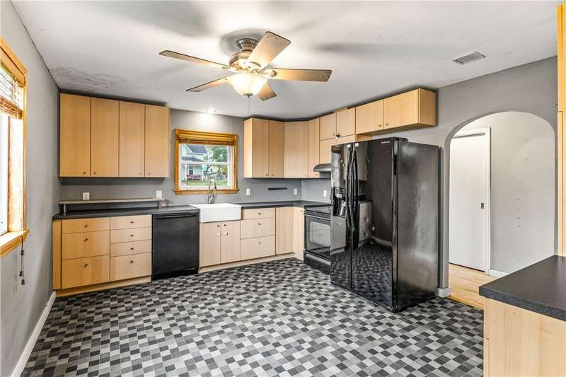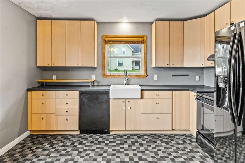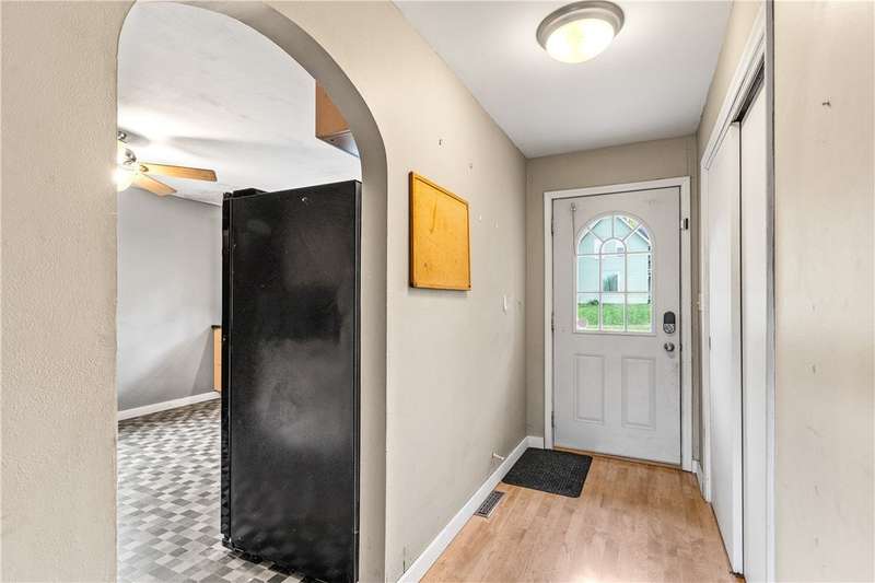 Welcome Home to McKinley Ave! Charming brick home on a corner lot located within walking distance of Fall Creek schools, shopping, and entertainment. The main level features a spacious eat-in kitchen, cozy living room, and three comfortable bedrooms. The finished upper level provides additional flexible space-perfect for a fourth bedroom, home office, or studio. A walkout basement with an overhead door leads directly to the driveway, adding convenience and extra storage or workspace options. Recent updates include a new heating and cooling system (2020), new vinyl windows, and updated electrical work. Enjoy outdoor living with a 16x30 front patio, a 16x16 back patio, and a fire pit area-ideal for relaxing or entertaining guests. This home offers comfort, convenience, and modern updates in a great location!