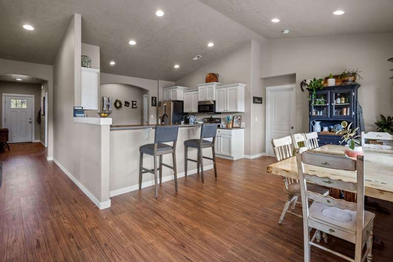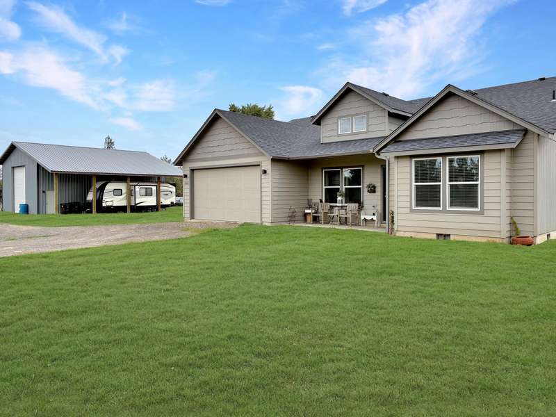 Located in a serene and private setting, this 2,040 sq ft home offers the perfect combination of comfort, style, and space. Built in 2018, this home features 4 spacious bedrooms, 2 modern bathrooms, and sits on a fully fenced 4.94-acre lot with a private well and 30' x 40' shop with electricity. Cross fencing of about a half acre would be perfect for your horses! There is new LVP throughout the entire home offering durability and easy maintenance. The light and bright kitchen has sleek quartz counterops, spacious windows overlooking the property, stainless appliances, and lots of storage. The primary bedroom has a soaking tub and large walk in closet. Outside there is a covered back patio for summer meals and outdoor relaxation. Don't miss the chicken coop too for your farming or hobbyist needs. Close to everything this lovely home is perfect for anyone wanting their own space.