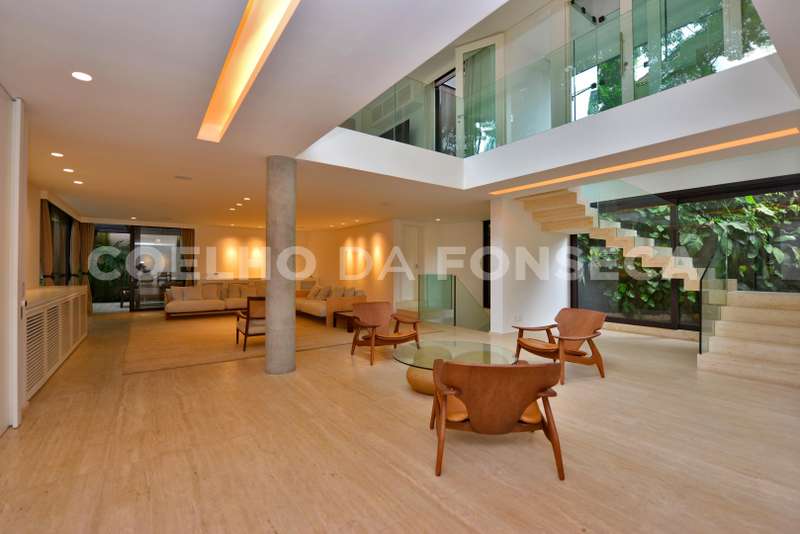 Linda casa reformada e moderna com projeto contemporâneo de Erick Figueira de Mello.Possui quatro suítes com closet, banheiros Sr. e Sra, todos em mármore, com terraços e ar-condicionado. Área social iluminada com vidros, living e salas de estar com pé direito duplo, além de adega climatizada. Projeto de cozinha em aço, com equipamentos Gaggenau. Portas deslizantes que integram ambientes, pisos em mármore e paisagismo. Subsolo e gerador