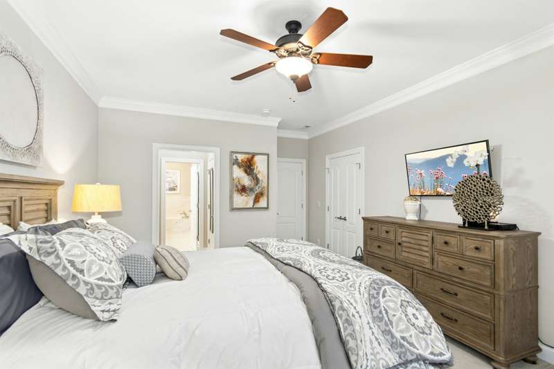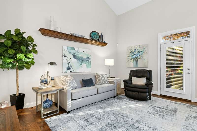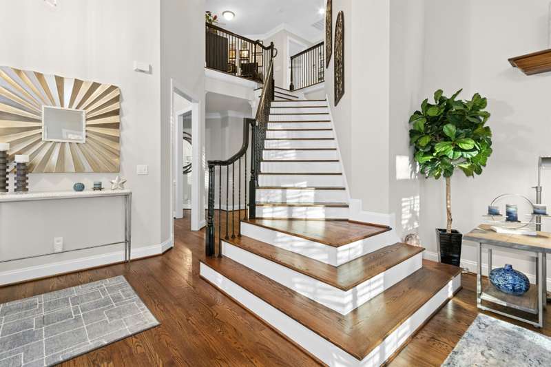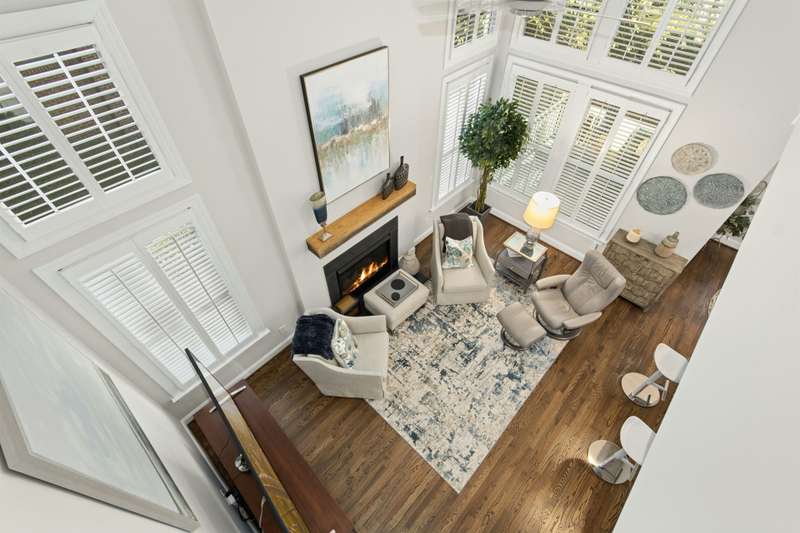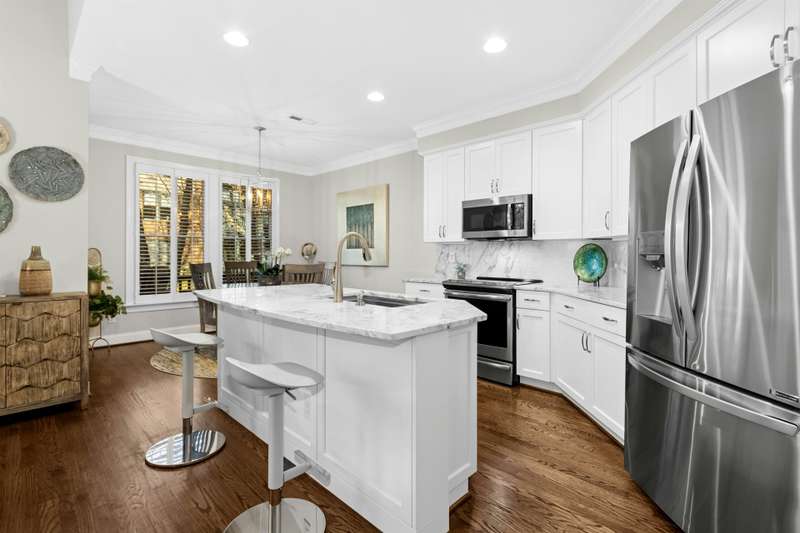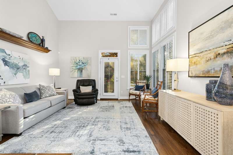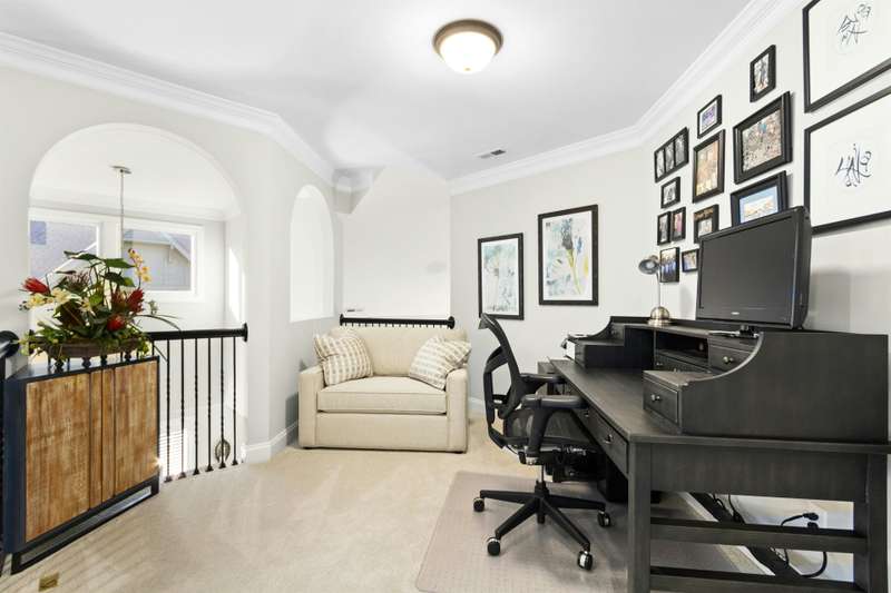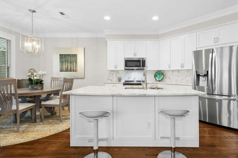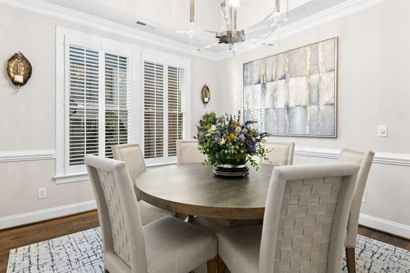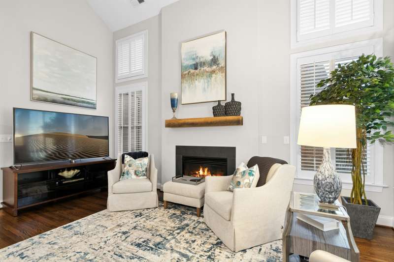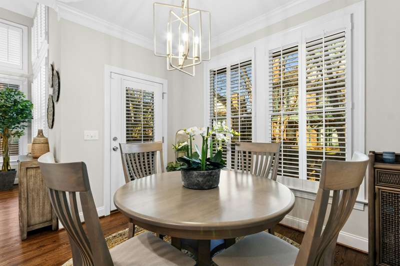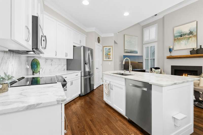 This elegant home offers timeless design and modern comfort throughout. Enjoy a bright, open floor plan with site-finished hardwoods in the main living areas, plantation shutters, and a vaulted family room with a cozy fireplace. The dream kitchen features an induction cooktop, new quartz countertops, under-cabinet lighting, and a pantry, plus a breakfast nook and dramatic two-story dining area. The opulent first-floor primary suite includes a luxurious bath and custom closet. Upstairs, a loft and two spacious bedrooms each with ensuites?one perfect as a second primary suite. Relax on the peaceful deck or in the charming courtyard. Two-car garage. Convenient to shopping and dining!