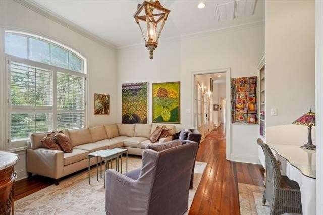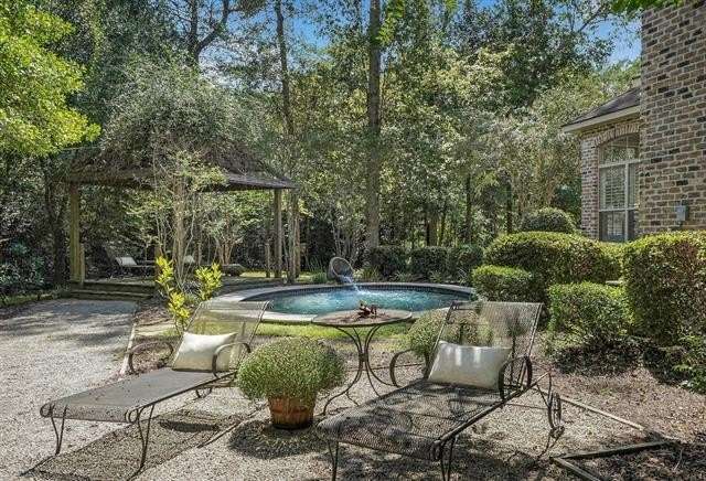 Perched on a bluff with the Little Bogue Falaya River meandering nearby is this beautiful European style home on +/-3.59 lush, private acres. Chic, professionally designed interiors with 12' ceilings, antique heart of pine floors, and custom lighting. Chef's kitchen with Wolf cooktop, farmhouse sink and marble counters opens to a spacious Living~Dining combo with French doors and a fireplace. A sunny glassed in breakfast or reading nook overlooks the grounds. A primary suite with large bath features a WOW closet! A stylish circular turret encasing the staircase leads you to a sitting room/den, four bedrooms each with a Jack and Jill bath, and a convenient computer nook. A bricked screened patio will be your go-to for morning coffee, cocktails, or to just take in the peace and serenity. An in-ground pool completes this idillic picture. Three car garage and Green space on three sides. Beechwood Gardens has a unique and compelling history with nature trails, abundant green spaces, ponds, a sandy beach on the river, and more. Breathtaking views of gorgeous grounds with abundant flora and fauna.