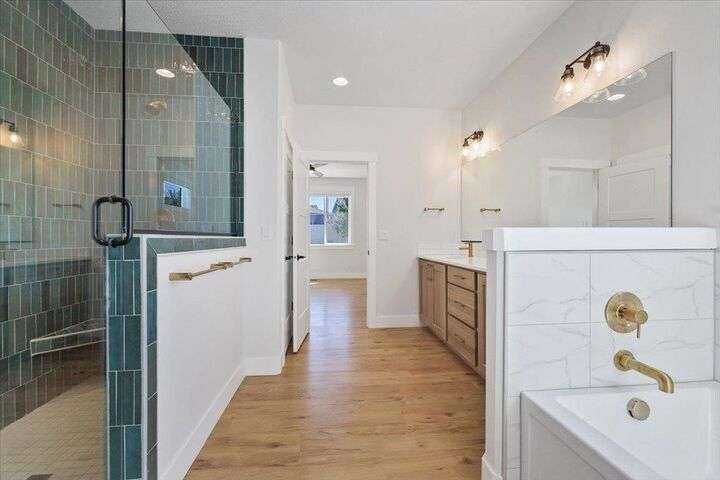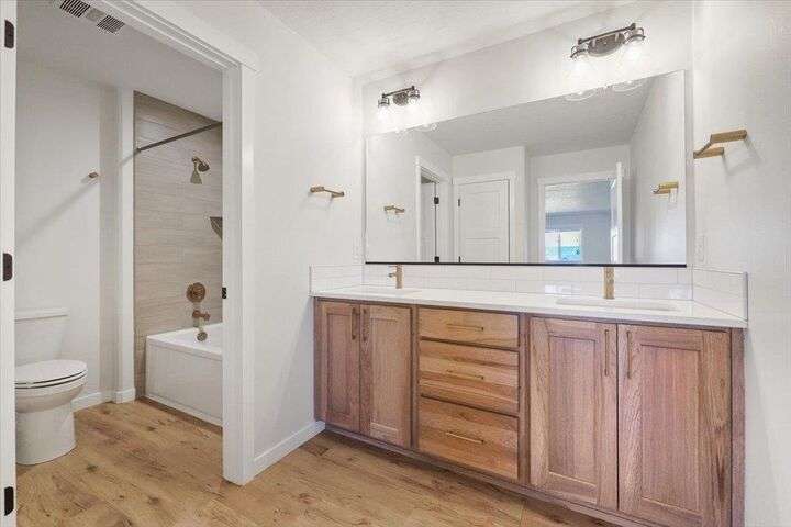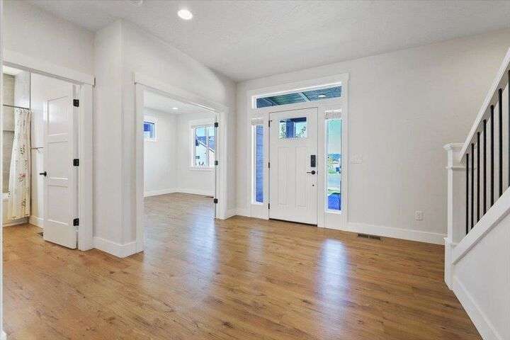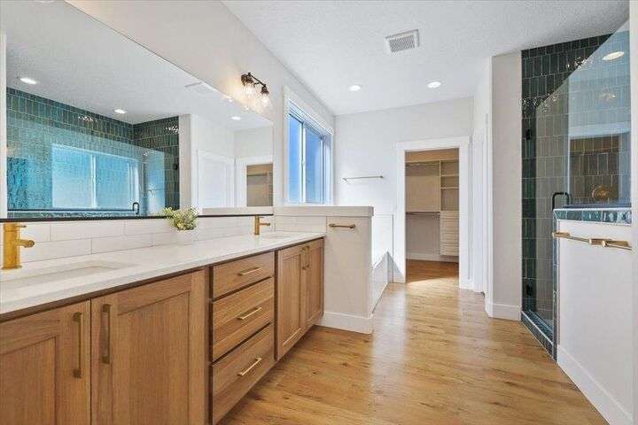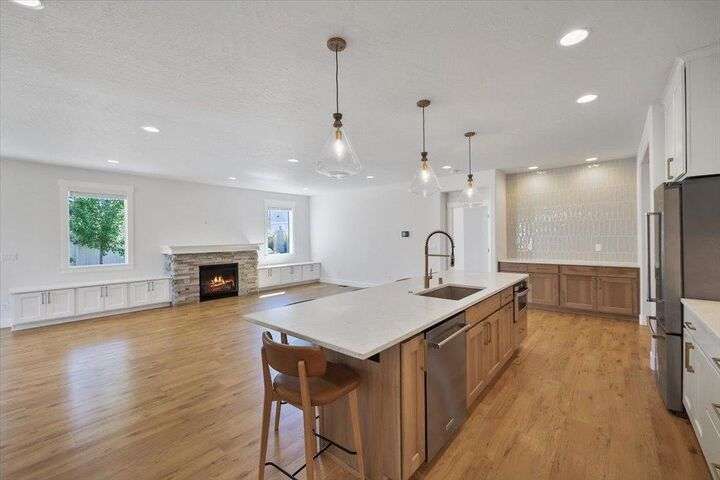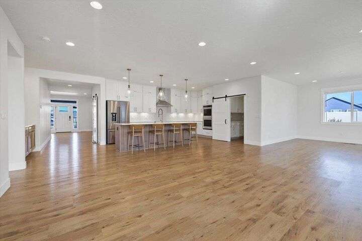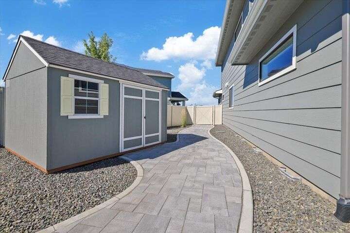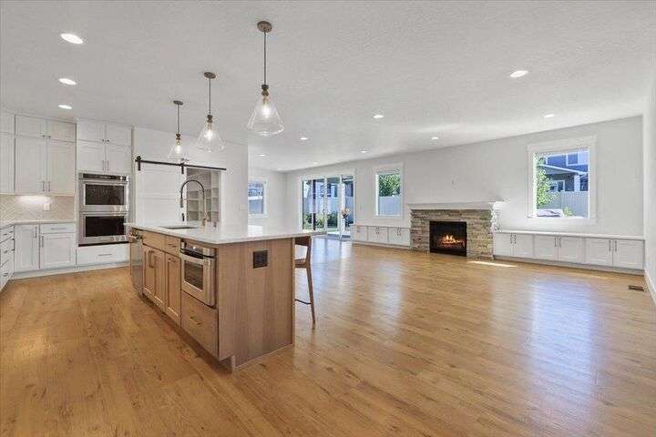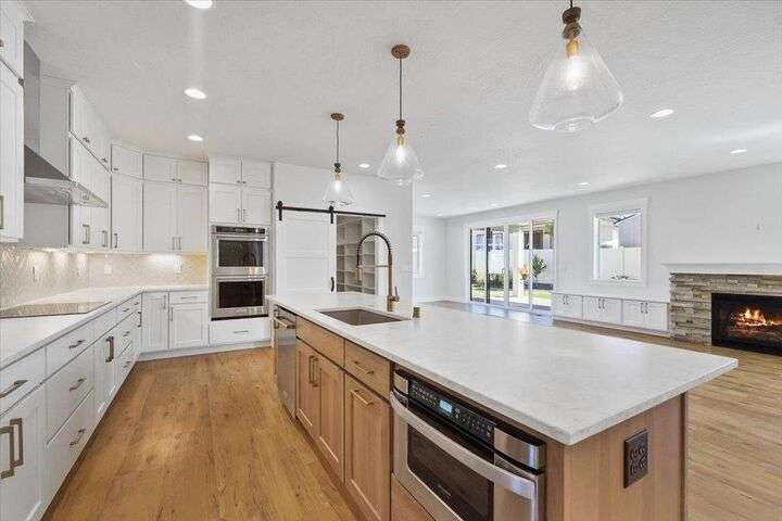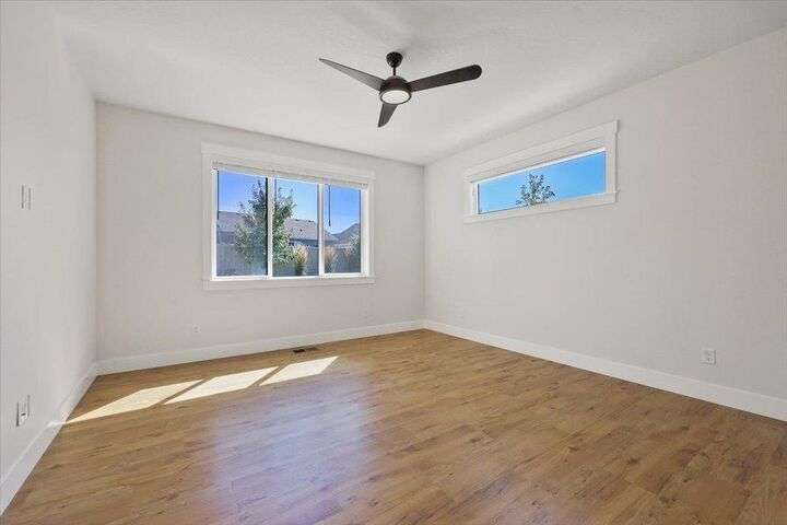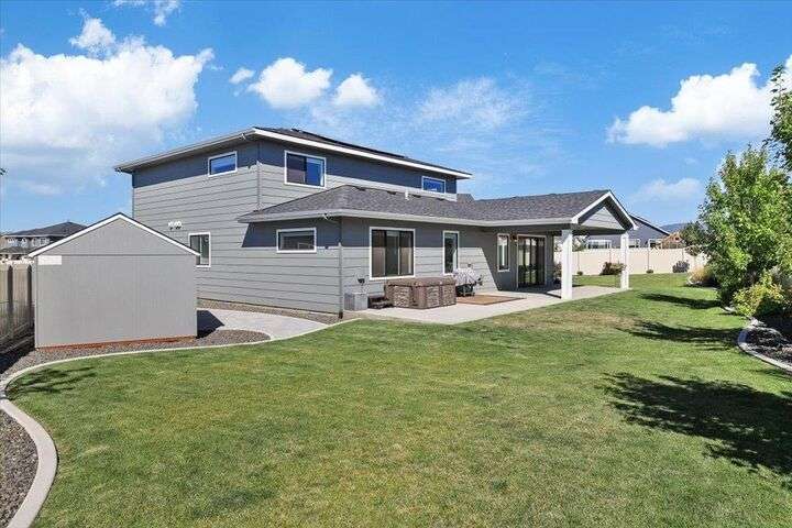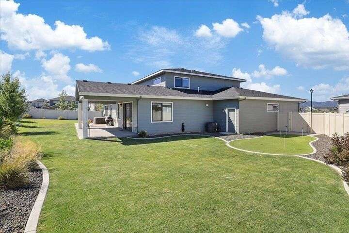 This nearly new home has all the latest finishes & features without the wait & hassle of building. Step into the welcoming foyer and take in the wide-open layout, tall ceilings, and elegant neutral tones. The showstopping kitchen boasts an induction cooktop, double ovens, an island/eating bar, and a butler’s pantry. The main-floor primary suite features a massive bath with separate tub & shower, plus an oversized walk-in closet. Upstairs, are 3 ensuite bedrooms & a spacious bonus area perfect for play, hobbies, or homework stations. Set on an oversized lot, the generous fenced backyard offers a putting green, hot tub, & professional landscaping. More perks include solar power, all kitchen appliances & an extra refrigerator, washer & dryer, window treatments, and an oversized garage with EV charger wiring & a virtual golf setup. Located on a quiet cul-de-sac in the desirable River District, you’re just blocks from 3 parks (including one with a splash pad and play equipment) & within a mile of several eateries.