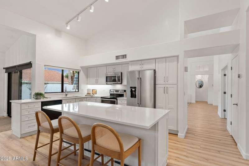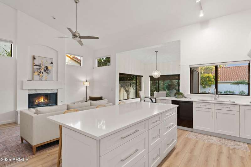 Beautifully updated 4-bedroom, 2-bath home that perfectly combines comfort, style, and an unbeatable Scottsdale location! The bright, open-concept split floor plan features luxury VP flooring, fresh interior paint, and abundant natural light. The designer kitchen impresses with quartz countertops, a spacious island, stainless steel appliances, and ample cabinetry. Both bathrooms showcase quartz counters, new plumbing fixtures, upgraded lighting, and elegant designer tile for a spa-like feel. Enjoy the cozy gas fireplace in the family room or retreat to the private backyard oasis with a heated pool surrounded by lush landscaping. Walking distance to Kierland Commons, Scottsdale Quarter, and the Westin Resort & Golf Club. No HOA, truly turnkey, and complete w/ Trane HVAC (2024). WOW!