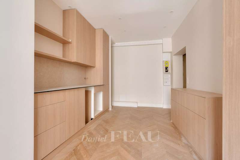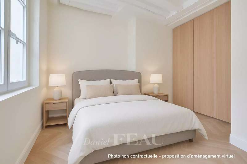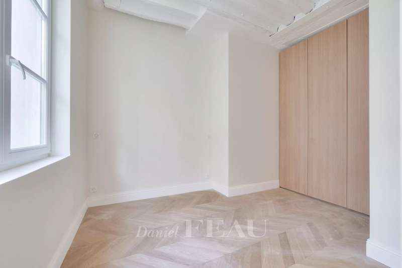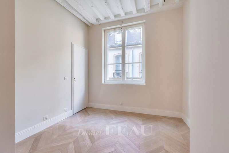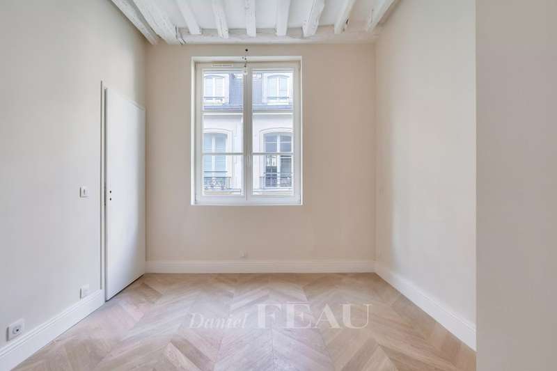 Rue du Temple. This renovated apartment on the second floor of a fine mid 18th century co-ownership offers 34.68 sqm of living space as defined by the Carrez Law. In mint condition, it includes a living/reception room with an open-plan kitchen, a bedroom and a shower room. In a prime location a stone’s throw from the Hôtel de Montmort in the heart of the historic Marais neighbourhood. The building is not equipped with a lift.
