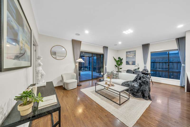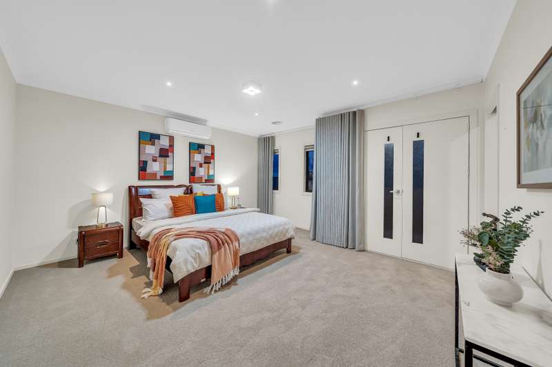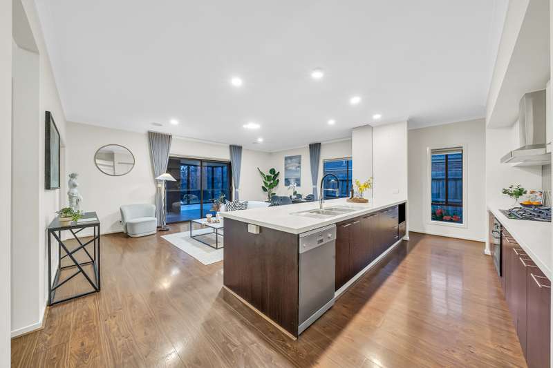 Showcasing exceptional craftsmanship and meticulous attention to detail, this magnificent four-bedroom residence is a true family haven. Perfectly located in the prestigious Featherbrook Estate, it offers unrivalled convenience with close proximity to leading schools, Featherbrook P9, kindergarten, Featherbrook shopping center, tranquil parks, and excellent transport links. With soaring ceilings, premium stone finishes, and a flexible dual-level design, this home blends timeless elegance with modern comfort, delivering a lifestyle of sophistication and ease. Key Features • Grand Entrance – Wide foyer creating a striking first impression. • Open-Plan Living – Sunlit living and dining area with built-in bar, seamlessly opening to a vast sunroom, perfect for indoor-outdoor entertaining. • Gourmet Designer Kitchen – Featuring an extended stone island benchtop, tiled splashback, walk-in pantry, built-in cabinetry, and premium appliances including gas cooktop, oven, rangehood, and dishwasher. • Guest Bedroom Downstairs – Complete with walk-in robe and full ensuite, ideal for extended family or visitors. • Theatre/Rumpus Room – A versatile retreat for family entertainment. • Master Suite – Luxurious upstairs bedroom with walk-in robe, private ensuite, and balcony access. • Additional Bedrooms – Two spacious bedrooms serviced by a central bathroom with bathtub and separate toilet. • Abundant Storage – Multiple linen cupboards, customised cabinetry, understairs storage, and a full laundry with side access. • Outdoor Living – Private undercover sunroom with customised storage, perfect for year-round use. • Secure Double Garage – Remote-controlled with internal and external access plus storage room. • Landscaped Yards – Low-maintenance backyard with fruit trees and a landscaped front garden for instant street appeal. Premium Inclusions Stone benchtops throughout, central heating and cooling, high ceilings, upgraded flooring, tiled shower bases, bathtub in central bathroom, retractable flyscreen doors, flyscreen windows, LED downlights, reverse-cycle air-conditioning, gas-boosted solar hot water system, clothesline, side gate access, and more. This residence epitomises luxury, comfort, and practicality in one of Point Cook's most desirable communities. A rare opportunity not to be missed. CONTACT US TODAY Di Zhu ?? 0410 911 167 (??Mandarin, English ) Wendy Khunwuthinun 0411 038 508 Haresh Mutreja 0430 095 116