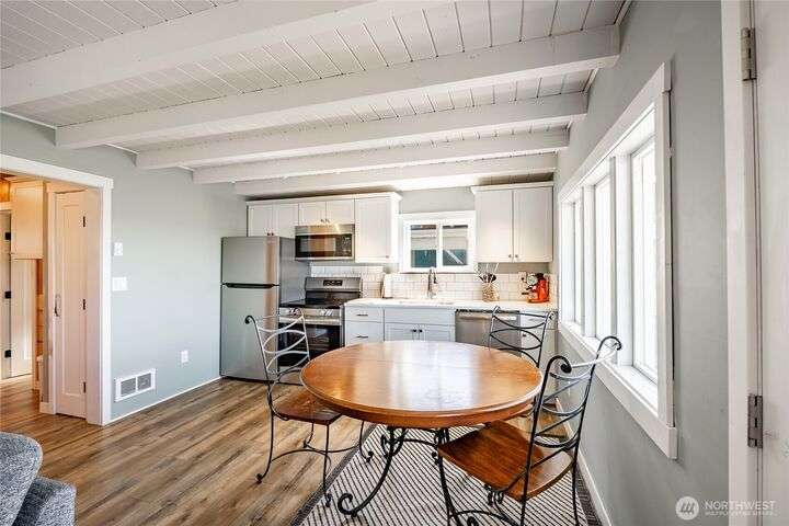 This Birch Bay waterfront gem features 3 bedrooms, 1.5 bathroom, and 1,036 sq ft with low-bank access and beach rights. Home has been recently remodeled and up-dated. Step out your back door onto the best hard-packed sand flats in Washington State, with a perfect westerly-facing, unobstructed water view! Large area for RV parking. Enjoy beach fires, sunsets, crabbing, clamming and boating. Ideal for full-time living or Air-BNB, this property is within distance of area restaurants, hair salons, beach trail systems. and the State Park.