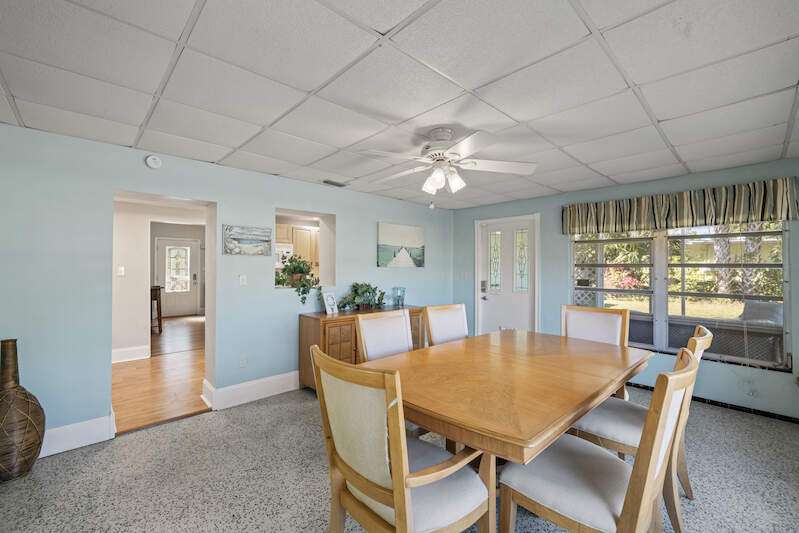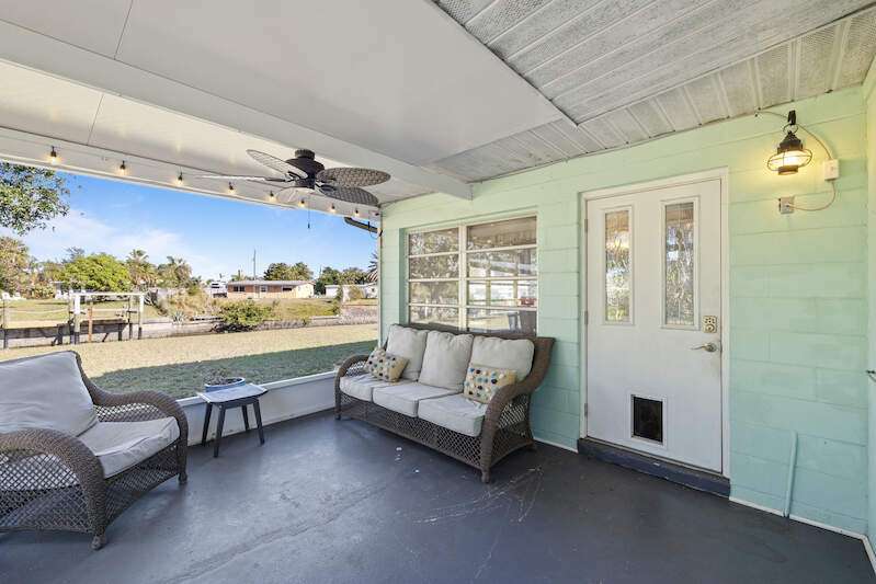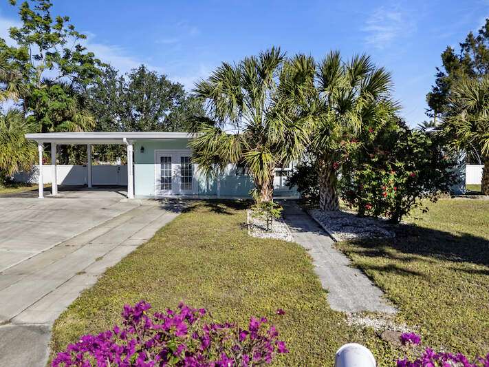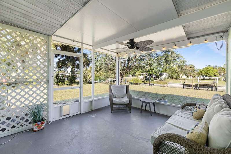 REDUCED PRICE! Welcome to your dream waterfront oasis on a tranquil canal with direct access to Charlotte Harbor and the Gulf of Mexico. This charming 3-bedroom, 2-bathroom home offers beautifully designed living spaces. The open-concept floor plan posses vaulted ceilings and stylish hardwood laminate flooring throughout. The remodeled kitchen features granite countertops and modern appliances, perfect for culinary adventures. Enjoy breathtaking water views from the spacious Florida room, an ideal spot for relaxing or entertaining guests. Step outside to the screened lanai, where you'll find a dock complete with a fish prep station with water and electric - a fisherman's paradise. The oversized backyard, adorned with vinyl fencing, offers privacy and a generous shed for added storage. This home is turnkey and a true hidden gem, blending comfort and convenience with a touch of coastal elegance. Make this waterfront retreat yours today!
