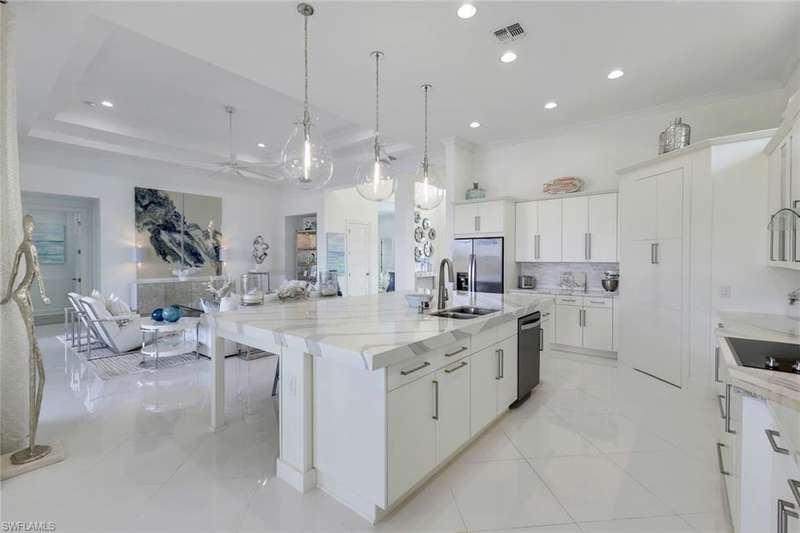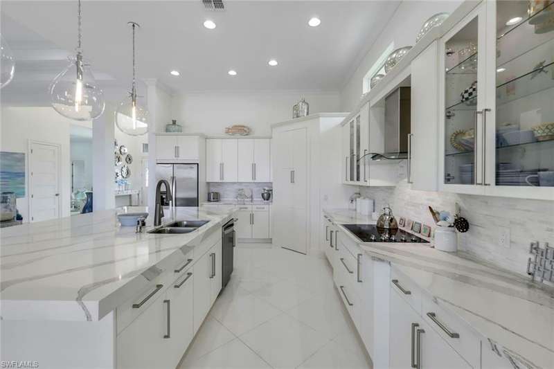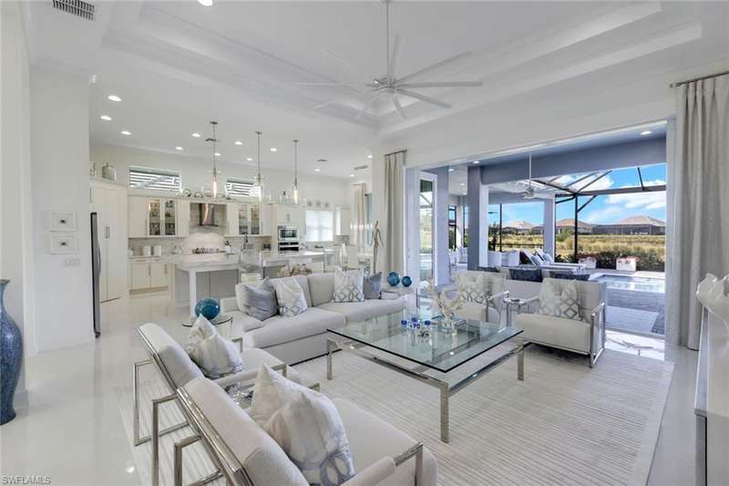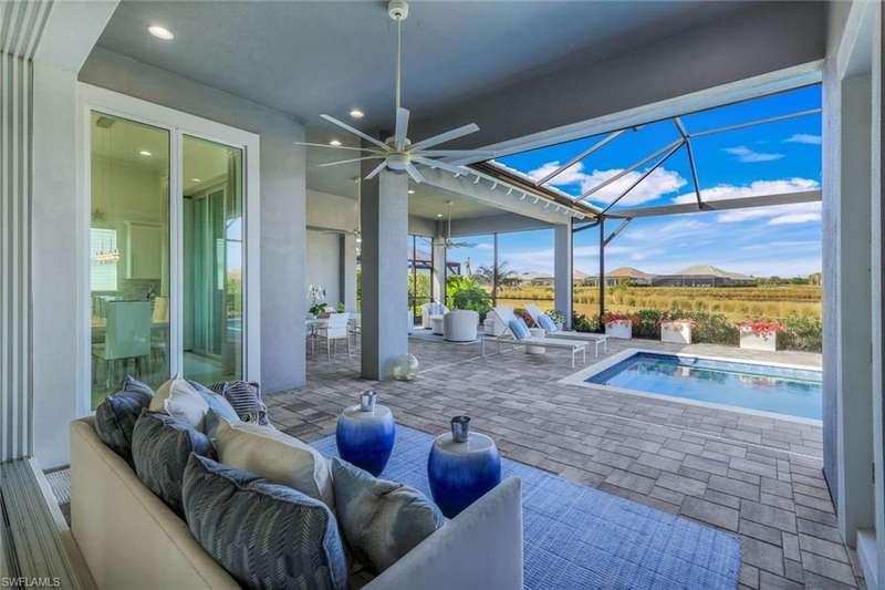 Welcome to the Copper Lilly floor plan, where luxury meets tranquility in this exquisite lakefront home. Nestled within the prestigious Isles of Collier Preserve Community, this meticulously maintained property offers breathtaking western-facing long-water sunset views. Step inside and be captivated by the thoughtful and curated features that define this exquisite residence. The split bedroom layout provides owner privacy while your guests have their own bedrooms with ensuite baths. The den provides a place for relaxation or watching the big game. The outdoor living space is a private oasis, designed for both entertaining and everyday relaxation. A sparkling pool with spa invites you to unwind, while the spacious lanai offers the best of covered and open-air seating complete with a pool bathroom. The expansive kitchen is a chef s dream, featuring an oversized island with seating for 4-6 guests, premium appliances, and a walk-in pantry. It s ideal for special homemade meals. Througho