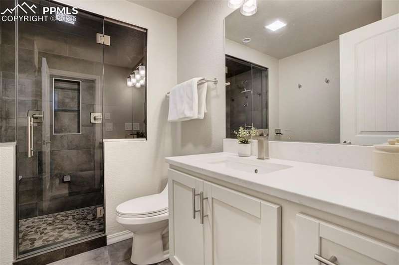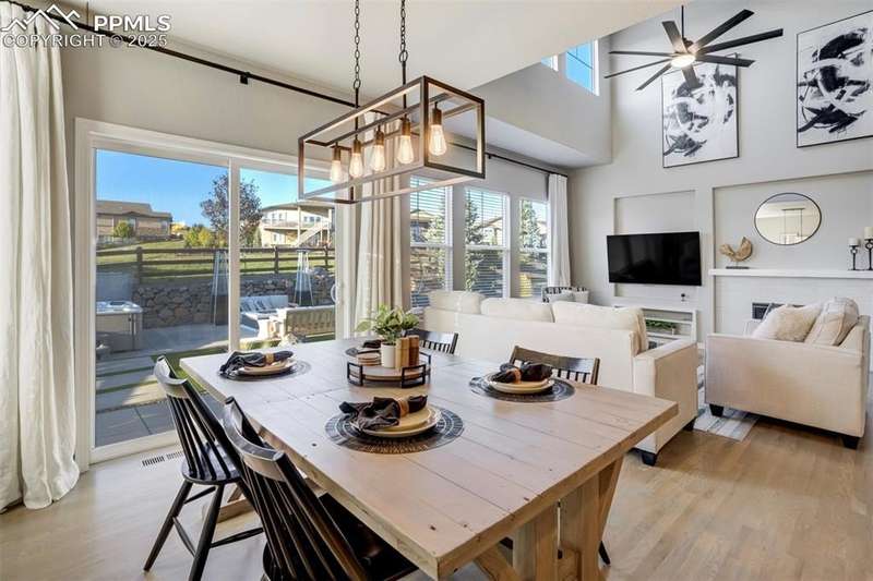 This isn’t just a home, it’s the home—the one that makes you look twice, linger a little longer, and start imagining your life inside its walls. The moment you walk in, the drama begins: soaring two-story ceilings and a fireplace in the living room, and hardwood floors that flow effortlessly across the main level. The remodeled kitchen is sleek yet inviting, perfect for morning cappuccinos or late-night wine with friends, while the flexible office/dining space gives you room to live exactly the way you want. There is an additional bonus room on the main level with a full bathroom as well. Upstairs, find the rare luxury of four bedrooms & a laundry room all on the same level—making bedtime routes almost enjoyable. The finished basement is pure versatility: a 5th bedroom, mini-kitchen, and a spacious family room (currently being used as a gym). And then… the outdoors. A professionally designed landscape frames every moment, from the crisp concrete walkways to the lush turf and a custom firepit that was built for laughter, storytelling, and maybe a glass of whiskey under the stars. Add in the private hot tub and suddenly every evening feels like a getaway. But the crown jewel? The Primary Suite. Step out onto your covered patio with jaw-dropping mountain views, and then retreat to a fully remodeled bathroom that redefines luxury. Think heated porcelain tile floors, a zero-entry shower with custom shower head design, and a vibe that’s less “getting ready” and more “spa day, every day.” The 3 car garage is spacious and clean. Cordera residents enjoy a resort-style Community Center with pools, fitness facilities, and year-round events, plus miles of trails, parks, beautifully landscaped open spaces, and highly regarded schools. This home doesn’t just check boxes—it seduces, inspires, and delivers a lifestyle you’ll never want to leave.