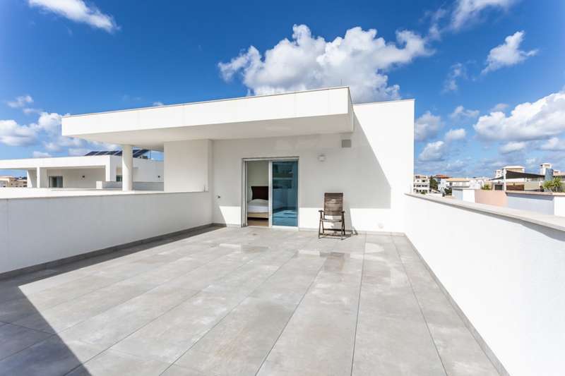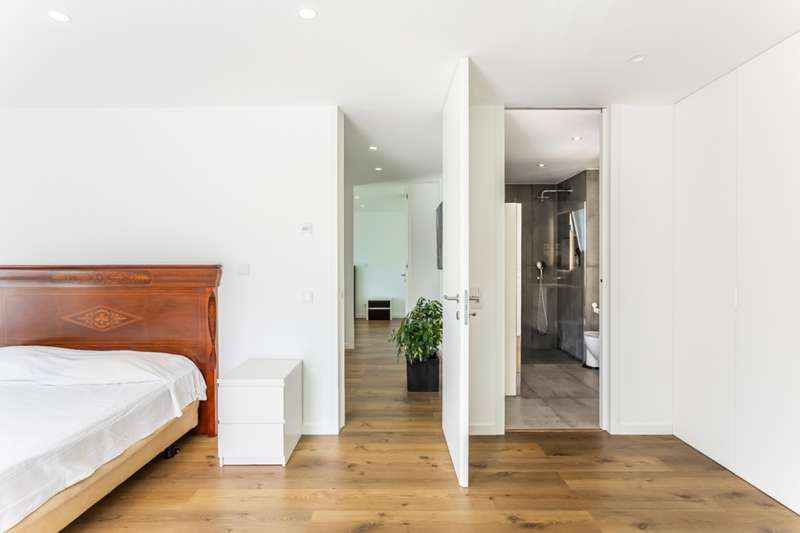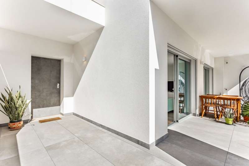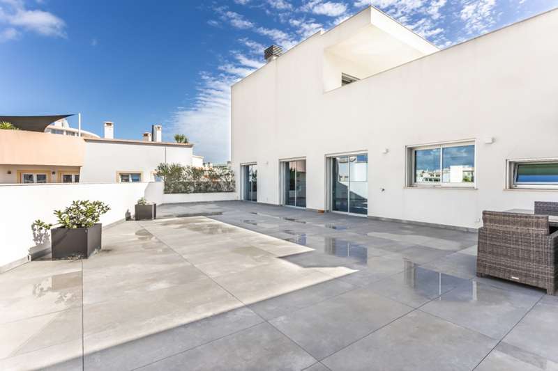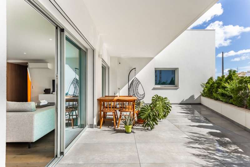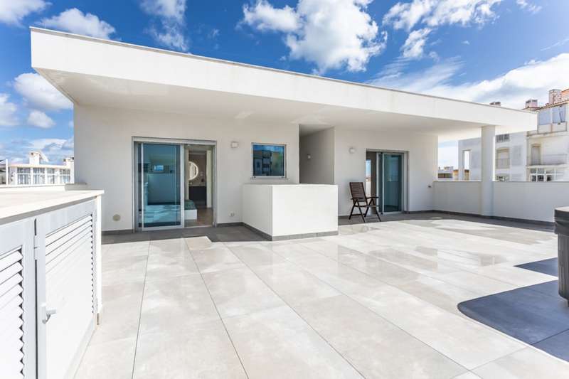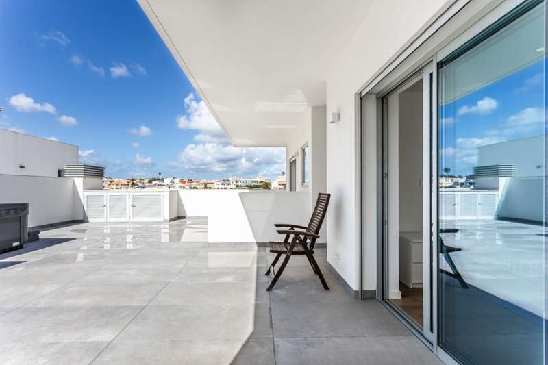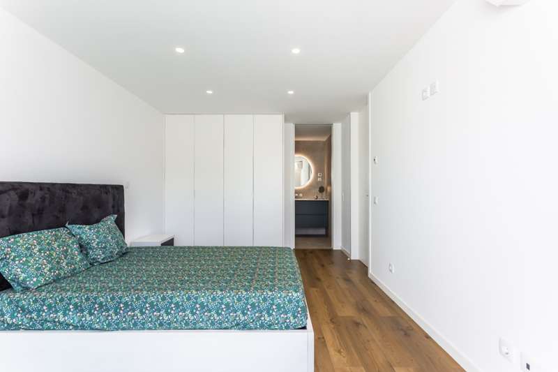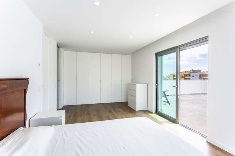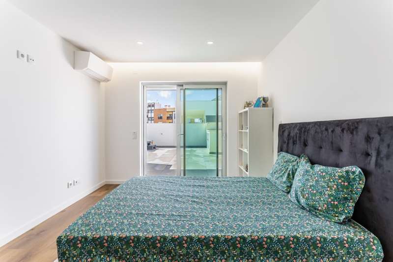 This modern two-bedroom townhouse is perfectly set in a quiet residential area, close to the historic center of the beautiful city of Lagos, in the Algarve. Built in 2021, this stunning property is as good as new, and offers the perfect blend of contemporary elegance with everyday living, an abundance of natural light and high-quality finishes. The entrance opens into a bright and spacious area, which leads directly into the warm and inviting living room that gives access to the front terrace through floor-to-ceiling sliding glass doors. The kitchen, fully equipped with modern appliances, has a large worktop, providing plenty of storage space and room for preparing meals. The kitchen is to the left of the living room and has access to a large private patio, perfect for entertaining guests and enjoying the mild Algarve climate. Also on the first floor, there is an office, a bathroom, a spacious garage for two cars, a laundry area and a storage cupboard. The second floor of the property includes the two spacious suites with built-in closets and access to two large terraces, one of which has a jacuzzi. The property is equipped with air conditioning throughout the house, solar panels, underfloor heating, double-glazed windows and electric shutters, all to ensure energy efficiency. It is centrally located, with easy access to the N125 national road and the A22 highway, a short distance from the beach, renowned golf courses and all the necessary amenities and services. It is also 1 hour from Faro International Airport. CHARACTERISTICS:Area: 305 m2 | 3 280 sq ft Useful area: 120 m2 | 1 295 sq ft Bedrooms: 2 Bathrooms: 3 Garage: 2 Energy efficiency: A FEATURES: 2 suites Equipped kitchen Terrace Garage Laundry room Jacuzzi Solar panels Underfloor heating Air conditioning