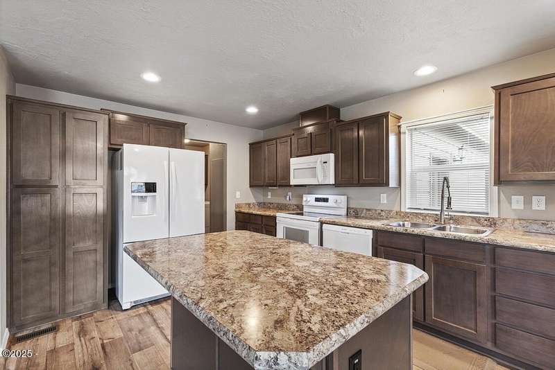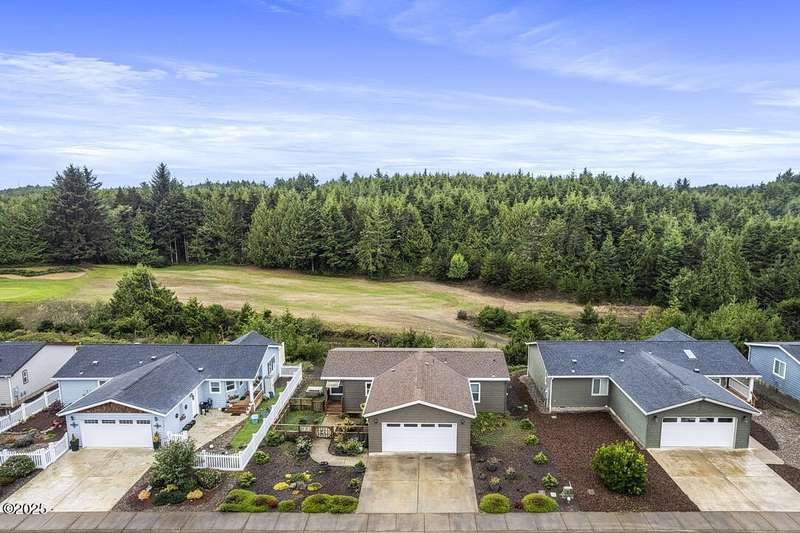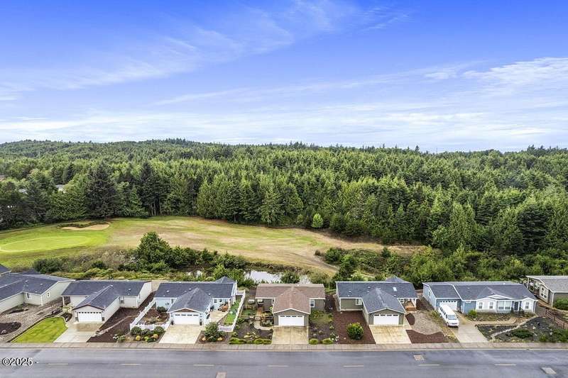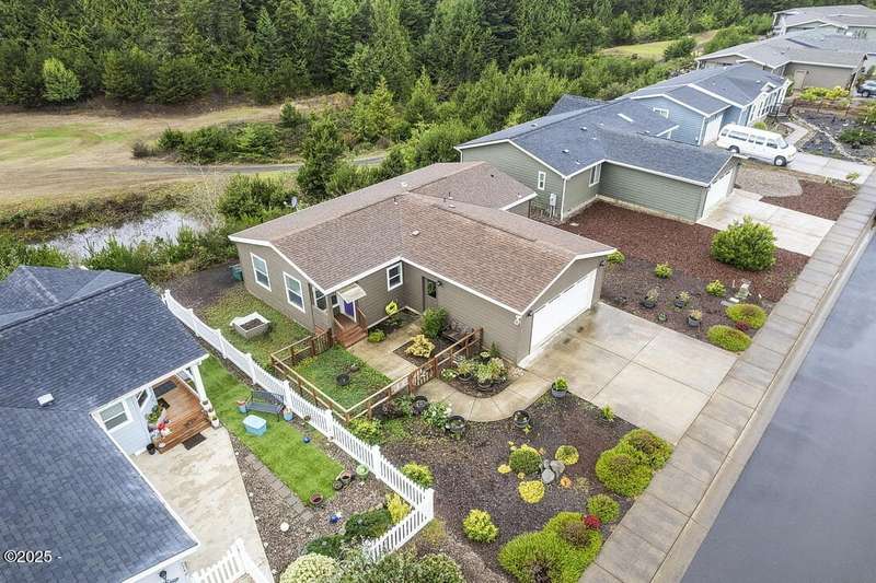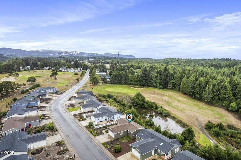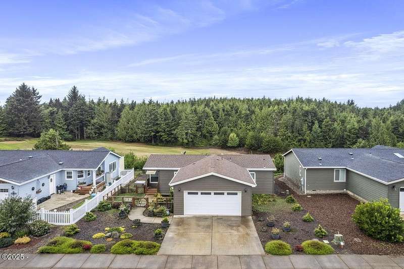 Welcome to Fairway Villas, a 55+ neighborhood, this beautiful home overlooks the 5th fairway of the Crestview Golf Club. Inside this home, built in 2019, lives like new with an open concept kitchen with large island for extra counter space and seating, a dining area, and a living room featuring built in shelves. Down the hall you will find the primary bedroom with ensuite bathroom, the 2nd bedroom, guest bathroom and a den with sliding glass door leading to your deck where you can sit and enjoy nature or watch golfers try to avoid the water hazard on fairway #5. The laundry room is located off the kitchen on your way to the 2 car garage. Outside is freshly painted, has a low maintenance yard, raised garden boxes and flower pots currently holding pansies.