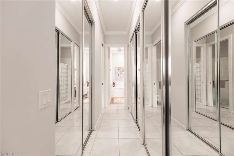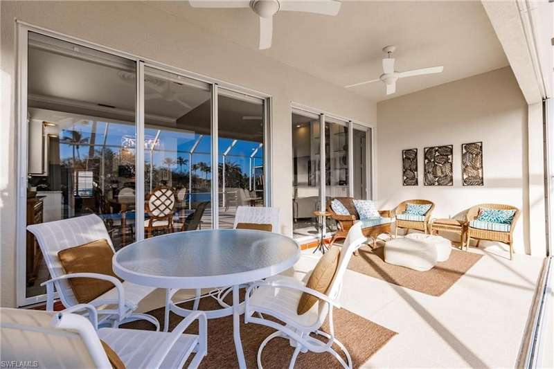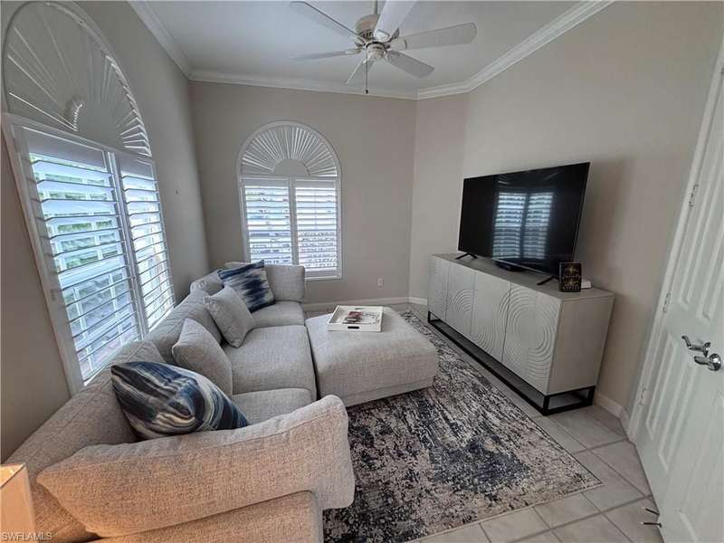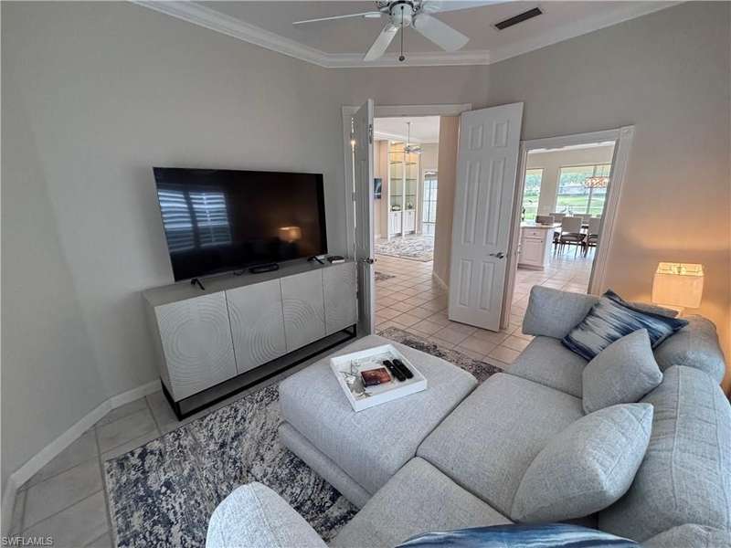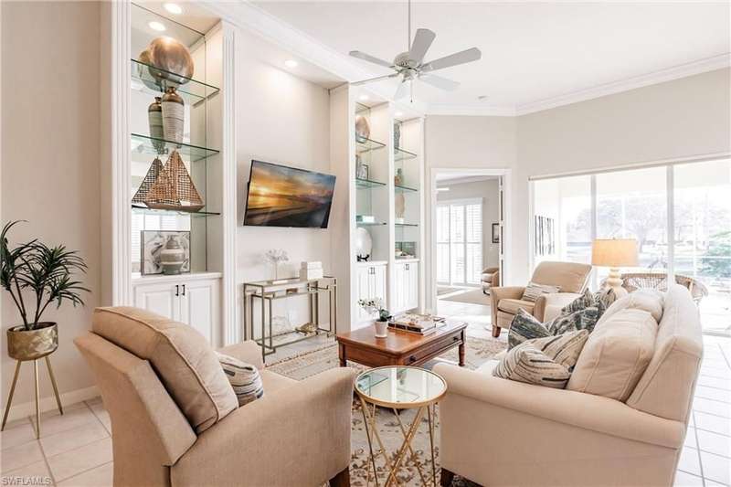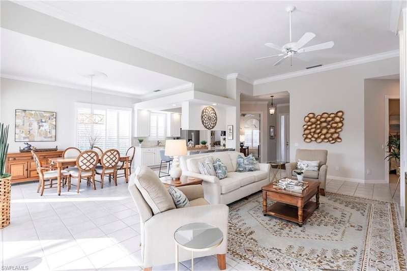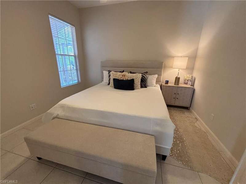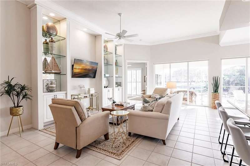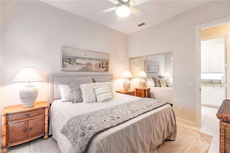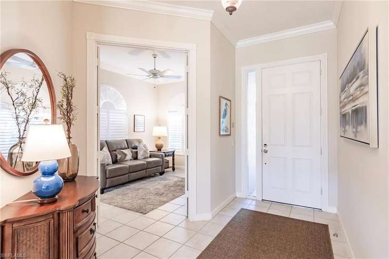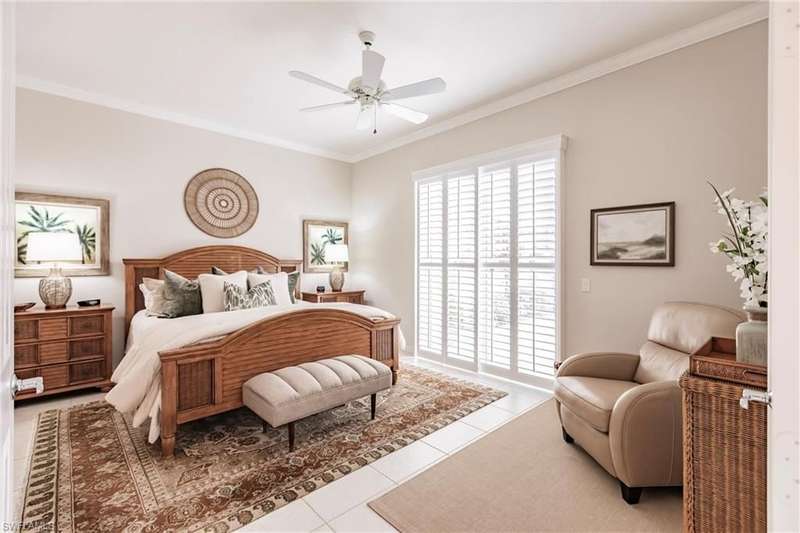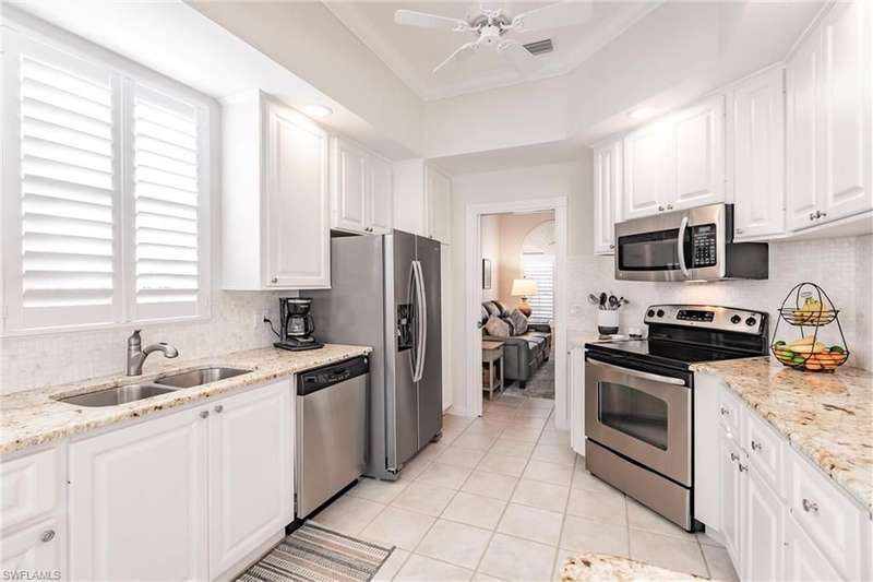 Big lake views with multiple Venetian bridges in sight. Pleasant walk to community amenities. Super clean 3 bedrooms, 2 bathrooms, den or home office, huge screened patio, and 2 car garage. Features include; 2018 roof, long brick paver driveway and sidewalks, screened front entry, modified wall unit, hurricane protection, remodeled guest bathroom, and great interior location within the community. Village Walk is 5 miles from the sugary sands of Vanderbilt Beach and 4 miles to the shopping and dining gem - Mercato! Amenities for everyone, including tennis, pickleball, bocce, gym with lap pool, restaurant with scenic patio on the large lake, 2 heated pools, and so much more! Please note this home is leased through May of 2026 and lease must be honored.