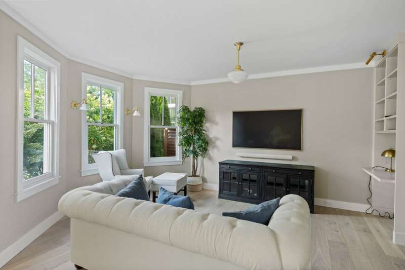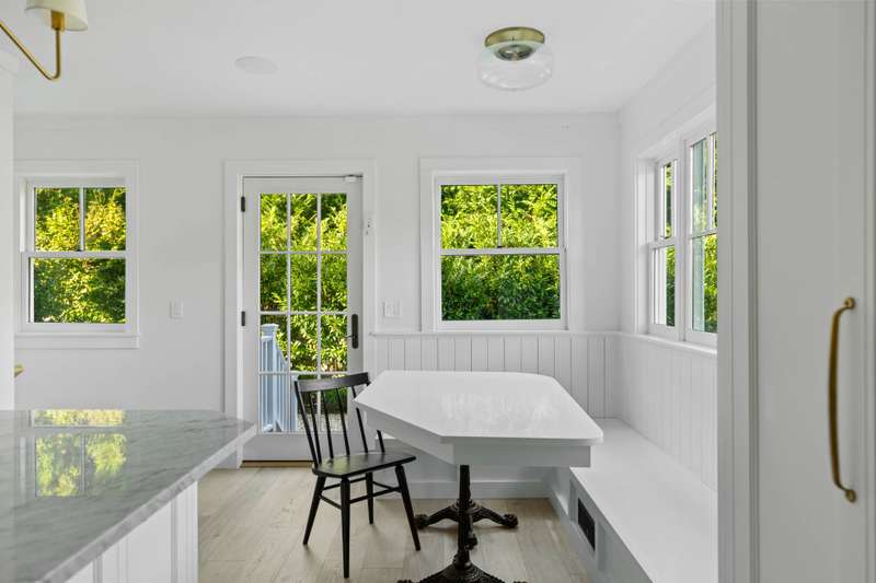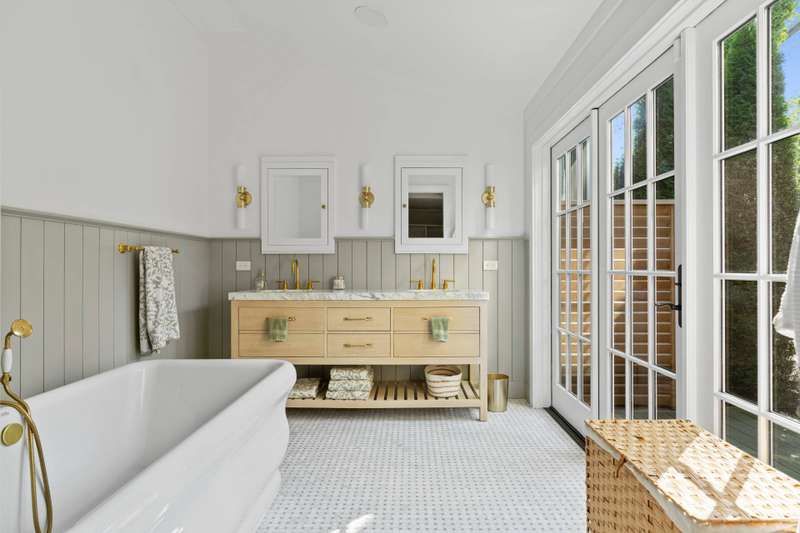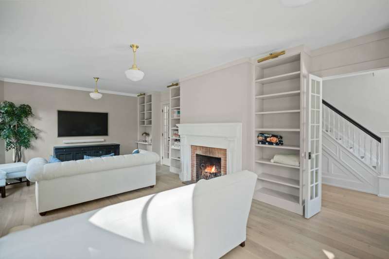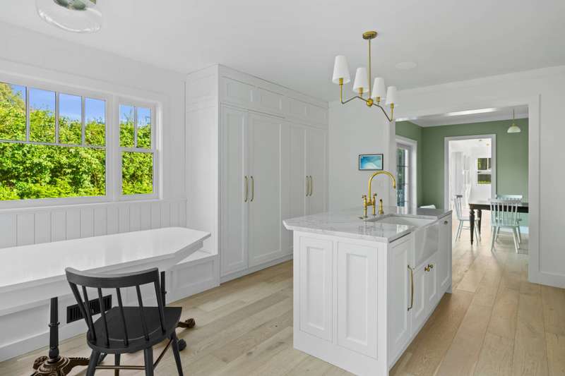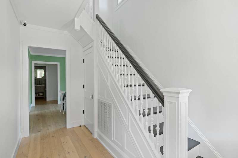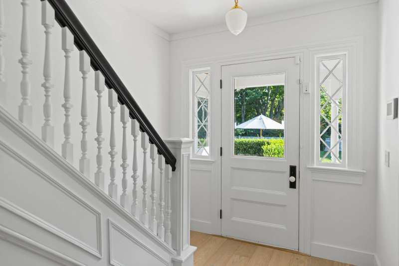 This elegant East Hampton Village home (circa 1870) underwent a gut renovation in 2023 under the acute eyes of architect Mark Zeff. Today, the home provides all modern amenities with special touches from years gone by. The large front porch welcomes you, the foyer offers a beautiful staircase with period detailing. Next is a spacious living room with original details and a fireplace, an enclosed sunroom overlooking the grounds offers a peaceful retreat. The gourmet kitchen is a chef's dream. A first-floor primary en-suite with walk through closet. On the second floor is another en-suite and three additional guest rooms with a full bathroom. The finished lower level offers additional spaces like a full bath, TV room, and office space. The heated gunite 13 x 40 pool is located next to a 13 x 7 spa overlooking the garden and pool house. Amenities include central air and beautifully finished pool house. Conveniently located close to the village restaurants and stores. Also, 1.26 miles to Main Beach.