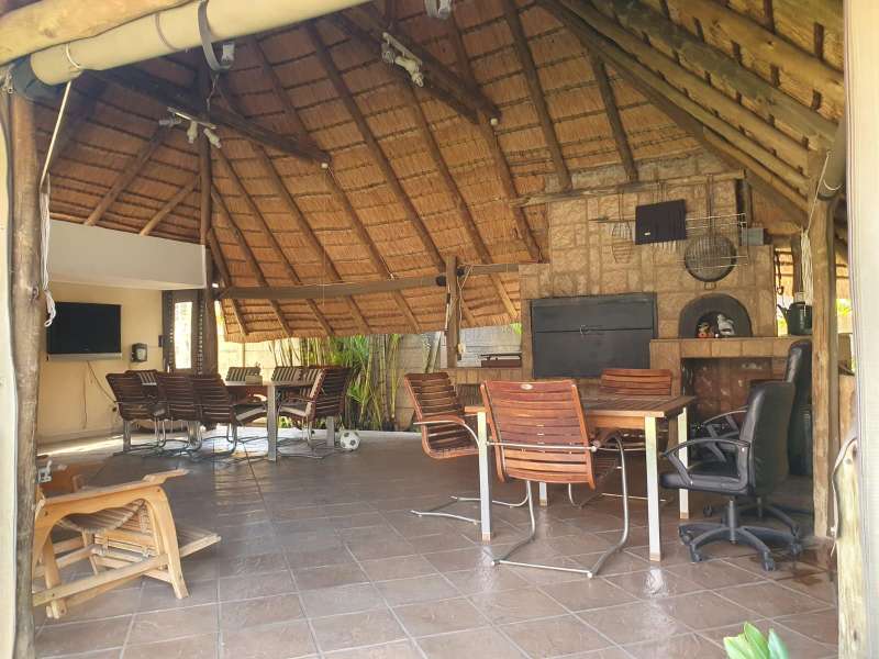 Exquisite Dual-Dwelling in the Heart of Bodorp Welcome to a premier property opportunity in Bodorp, perfectly situated close to esteemed schools and a host of local amenities. This impressive property encompasses two upscale residences on a single erf, offering unparalleled versatility and luxury. Main House: Size: 500m?? of refined living space Bedrooms: 4 spacious bedrooms, including a lavish main bedroom with a private en-suite bathroom and a cozy pajama lounge Bathrooms: 3 well-appointed bathrooms Living Areas: Expansive open-plan living areas designed for comfort and style Kitchen: A grand kitchen with high-end finishes and ample space, perfect for culinary enthusiasts Additional Rooms: A dedicated study for work or relaxation Entertainment: A large pool surrounded by a beautifully landscaped garden, and a built-in bar ideal for hosting guests Practical Features: A borehole ensuring a steady water supply, a big laundry room, and well-appointed servant quarters Second Dwelling: Size: 200m2 Type: Double-storey structure with versatile use Residential or Commercial: Ideal for conversion into a business or residential use Entrance: Separate entrance for privacy and convenience Ground Floor: A welcoming reception area and a kitchenette and a consultation room Upper Floor: 3 adaptable rooms that can serve as consultation rooms, offices, or additional living spaces Amenities: Includes a guest toilet and a bathroom for added convenience This dual-dwelling property not only offers a luxurious home environment but also presents exciting possibilities for investment or professional use. Experience the perfect blend of elegance, functionality, and strategic location with this exceptional Bodorp property.
