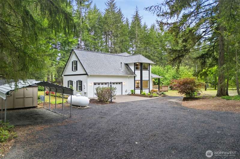 Your Dream Home Awaits on 5+ Acres of Natural Beauty! This custom-built, one-owner home nestled in the woods. Sitting on just over 5 acres of mature gardens & landscaped grounds, this nearly 3,000 sq. ft. home combines comfort w/timeless charm. 4 bedrooms, 3 bathrooms, & a 5-bedroom septic system, there's room to grow. Main-floor primary suite includes a luxurious 5-piece ensuite & walk-in closet for convenient main-floor living. Fresh interior & exterior paint, Newer roof (installed by Integrity Roofing in 2020), On-demand generator. Expansive deck ideal for outdoor dining or soaking in nature. Beautiful gardens w/fruit trees, a charming koi pond, & a greenhouse. This property is a rare find—offering both seclusion & sophistication.