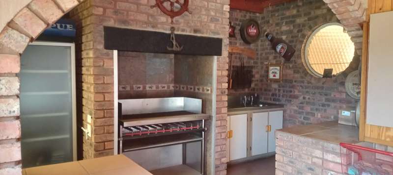 Outside covered patio for the entertainer and a built in bar outside kitchen with a gas braai