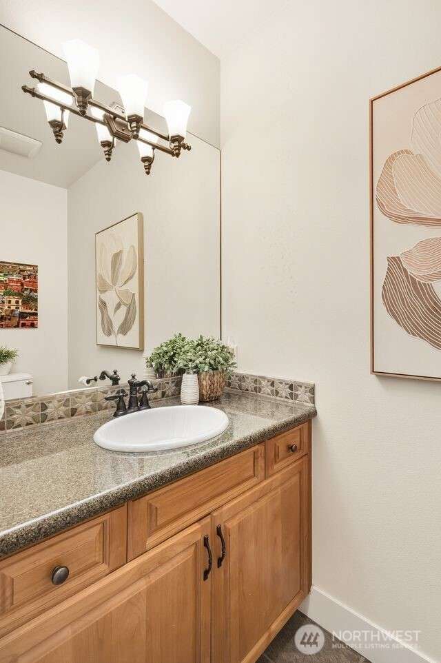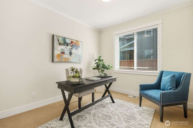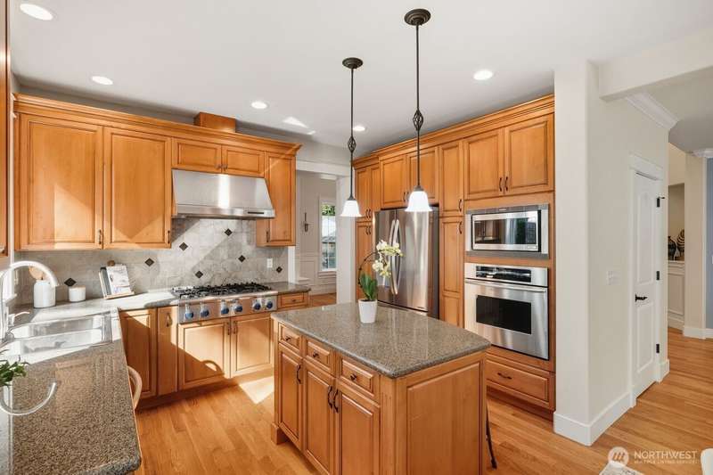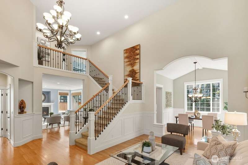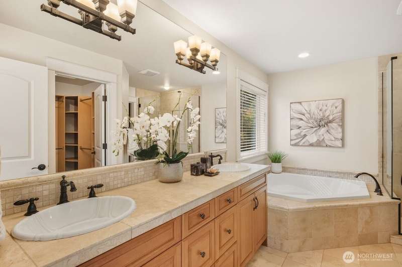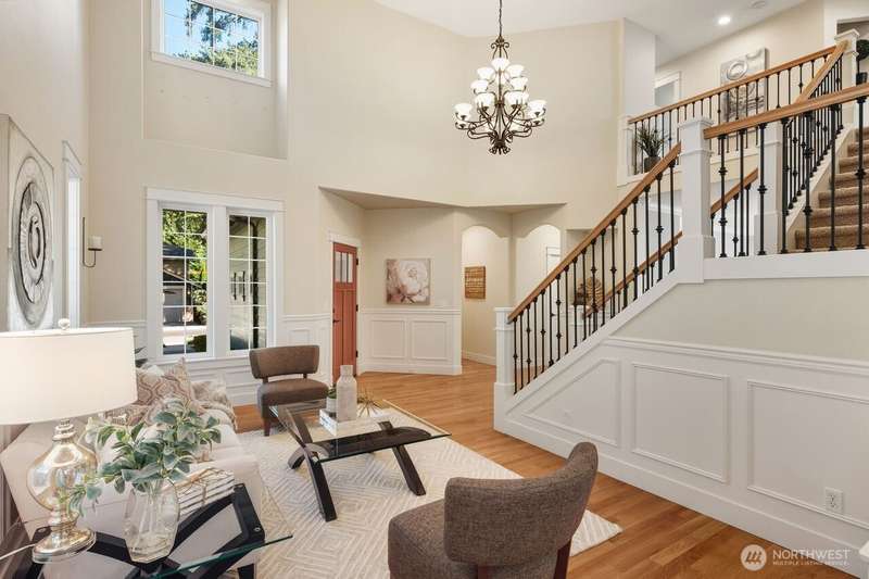 Beautiful elegant home offering unmatched convenience & modern comfort. Step into a dramatic grand entry w/ soaring ceilings that set the tone for this stunning residence. Rich hardwood floors, extensive crown molding & wainscotting an ideal blend of formal & casual living spaces. Dedicated main-level office perfect for work-from-home setup. The heart of the home is the beautifully appointed kitchen, complete w/ granite slab countertops, pantry & stainless steel appliances. Upstairs, enjoy generously sized bedrooms, a convenient upper-level laundry room & a huge bonus room. Luxurious primary offers spa-like retreat w/ soaking tub, dual vanities & spacious walk-in closet. Step outside to a covered deck overlooking expansive private backyard.