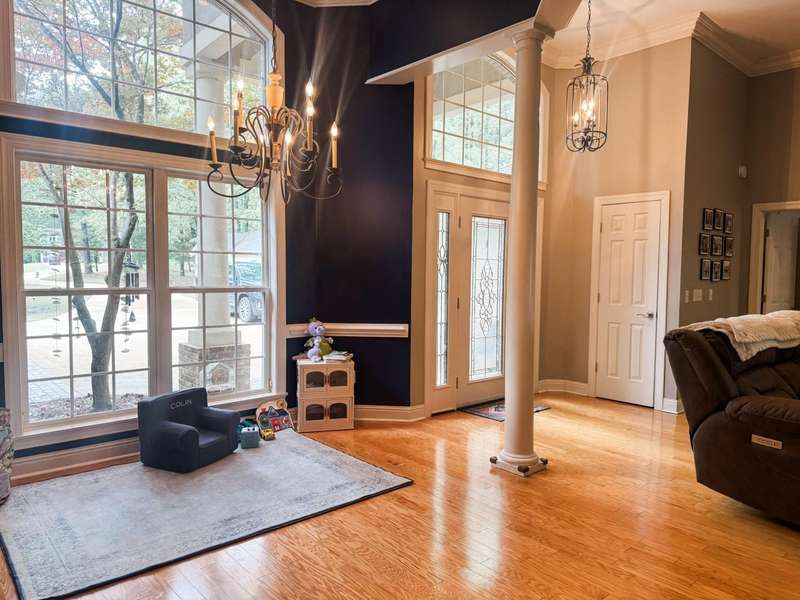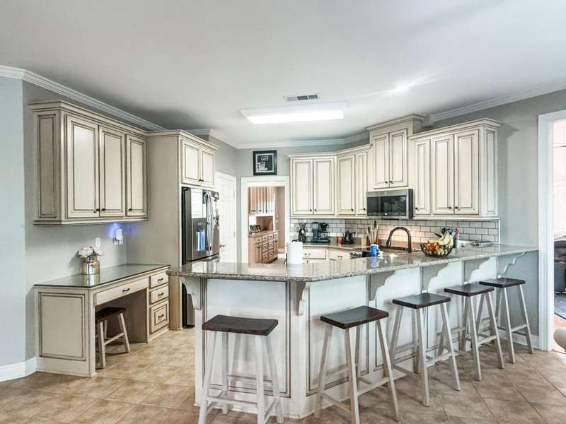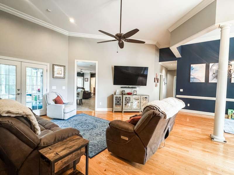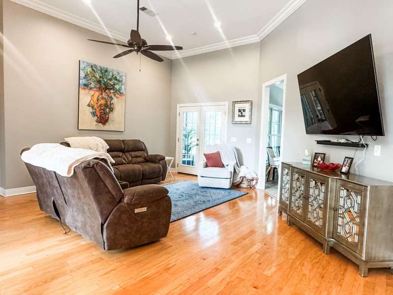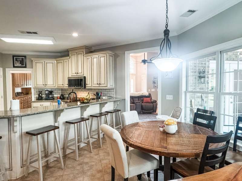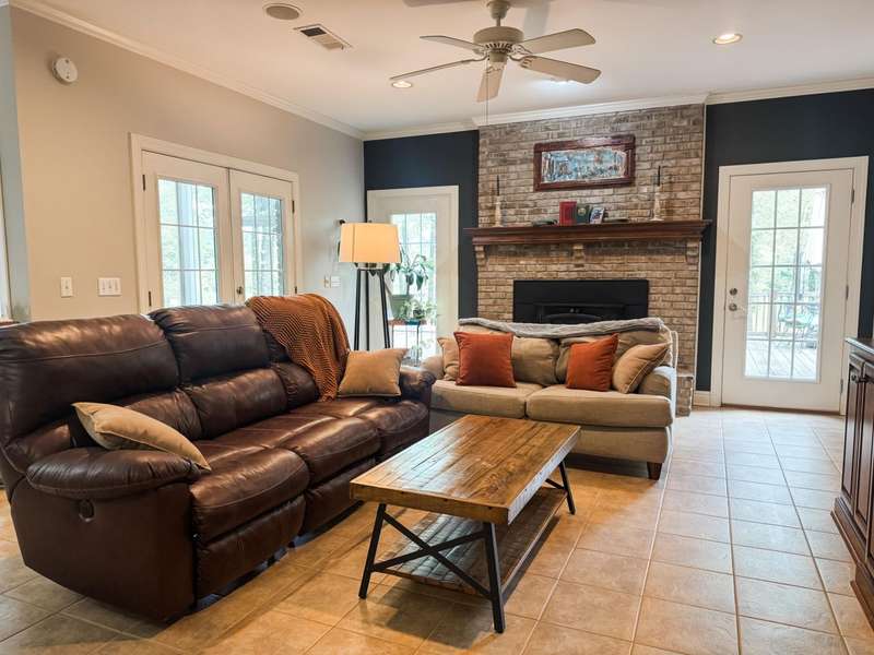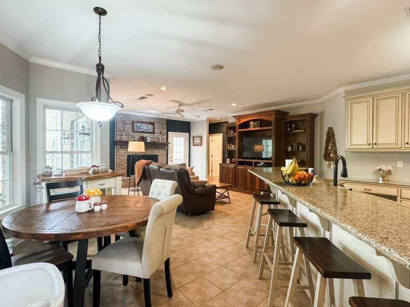Welcome to your private retreat! This beautifully maintained 4-bedroom, 3-bath brick home sits on 3.5 breathtaking acres, surrounded by lake views on three sides. Thoughtfully designed for comfort and function, this one-level layout features a spacious master suite with a sitting area and serene lake views, plus a screened-in porch perfect for relaxing or entertaining. The heart of the home boasts a kitchen loaded with custom cabinetry, a cozy keeping room with fireplace, and ample storage throughout. Outside, you'll find a 46x24 detached garage/workshop, in addition to the attached double garage, ideal for hobbies, storage, or extra vehicles. A long, paved driveway adds to the home's curb appeal and convenience. Located in the Saltillo this property offers peace, privacy, and space--all