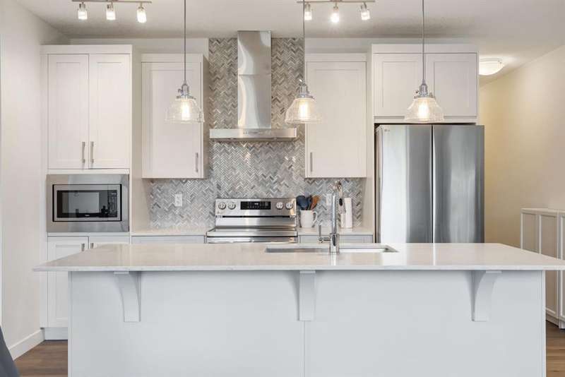 Welcome to Unit 117! This incredible gated, walk-up unit is arguably the nicest in the building. Upon entering, you are greeted by a bright, spacious open floor plan featuring a chef’s upgraded kitchen, complete with a built-in microwave, gorgeous centre island, and ample cabinetry for exceptional storage. The unit also includes a custom wall pantry and a cleaning/laundry closet, providing even more function and convenience to your space. Off the living room, you’ll find a sizeable primary bedroom with a deep two-sided closet and a spa-inspired 4-piece ensuite with linen cupboard. Completing this unit is a second bedroom and a 4-piece main bathroom. Additional highlights include central A/C for year-round comfort, a titled underground parking stall with storage right in front, and a private walk-up patio overlooking a beautiful green space with plenty of visitor parking right outside the gate. Located just steps from shops, grocery stores, coffee shops, and public transit, this unit offers the perfect blend of luxury and convenience in pet-friendly Walden Place. Don’t miss your chance to call this stunning unit home — schedule a private tour today!