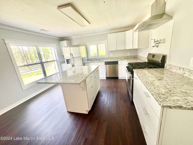 Beautifully remodeled 3 bedroom 2 bath home sitting on a half acre lot. This home was taken down to the studs and built back with a new layout. All new electrical, plumbing, HVAC, lighting, appliances, washer, dryer, kitchen cabinets, counter tops, flooring, new metal roof, and much more. Now the all new large kitchen with granite counter tops opens up into the den. Seller installed a gas fireplace insert for those special moments as the family gathers together. One bedroom has a quaint bathroom attached with a walk-in closet. The other two bedrooms are a good size and will fit most needs. The second bathroom is so large seller installed the washer and dryer in it to cut down the steps to do laundry. Home has a good sized covered front porch to enjoy sitting out on pleasant days.