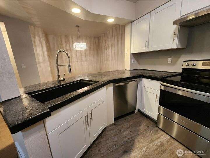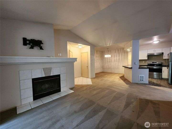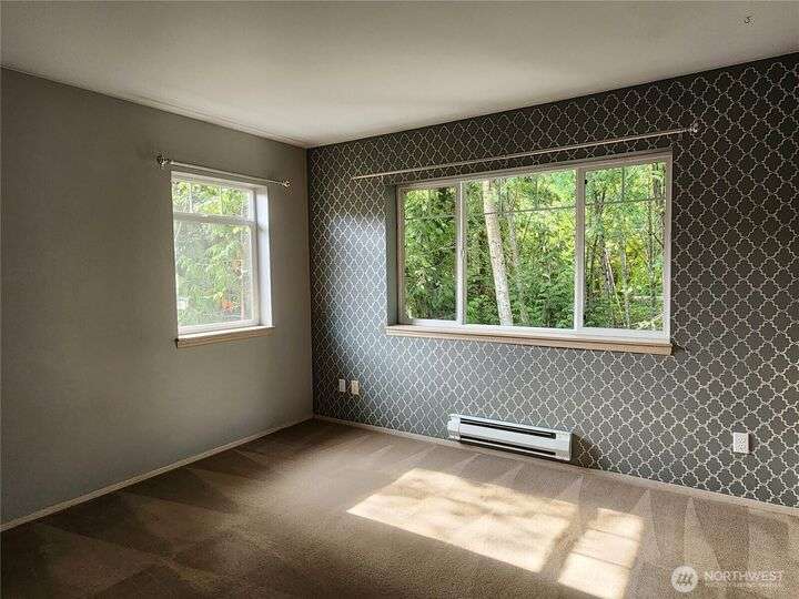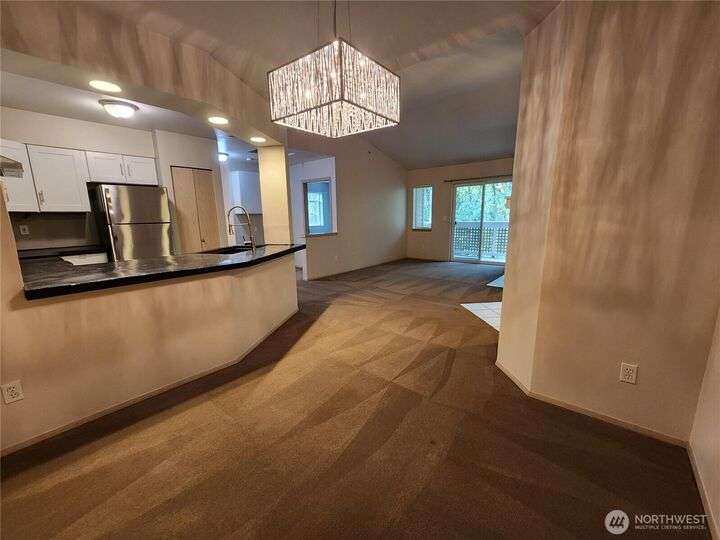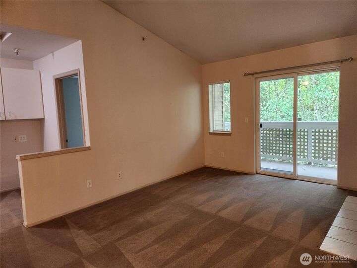 Enjoy this spacious top floor, end unit, with wetland views. This light and bright condo offers a combination of privacy and convenience. Living Room with vaulted ceilings &wood burning fireplace. Updated kitchen with a suite of newer appliances, more than ample counter and storage space, and an eating bar. Separate Dining with beautiful, high-end lighting. Large, bedroom with custom accent wall, and spacious walk-in closet. Full bath and laundry room with full size washer and dryer. Private deck with storage overlooks wetland area. Reserved, covered parking. Easy access to 405, Park N Ride, UW of Bothell. Assigned carport space. Terms: 1st months rent & $1550 sec. dep. 12+ month lease. No smoking. Pets okay.