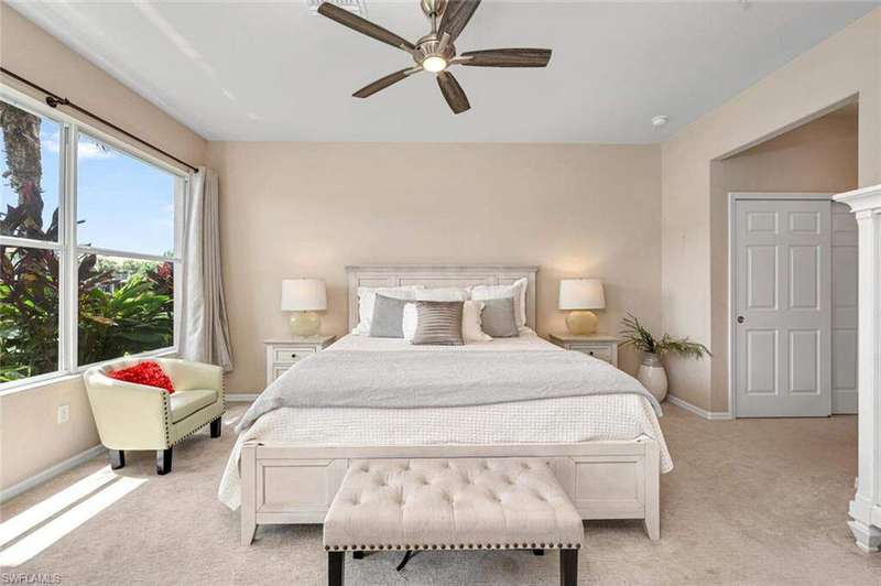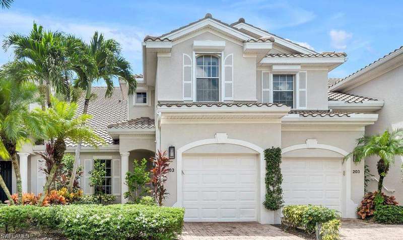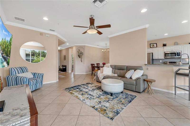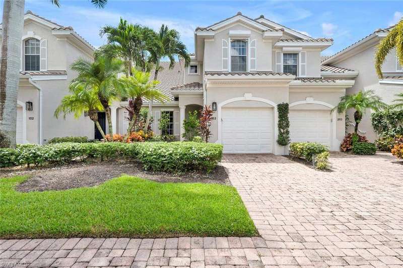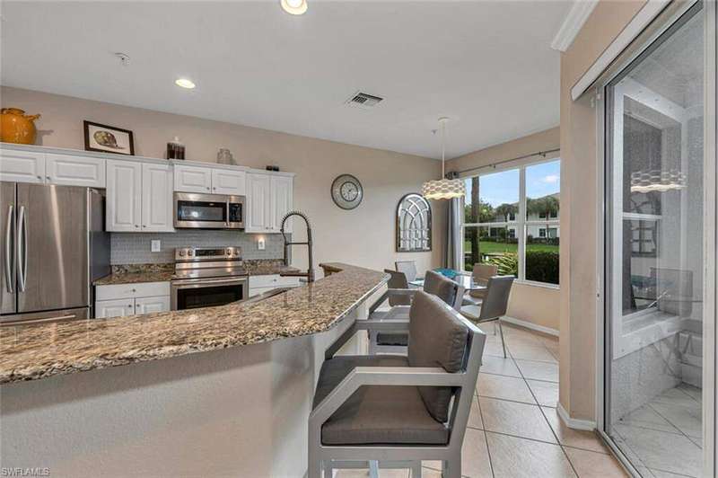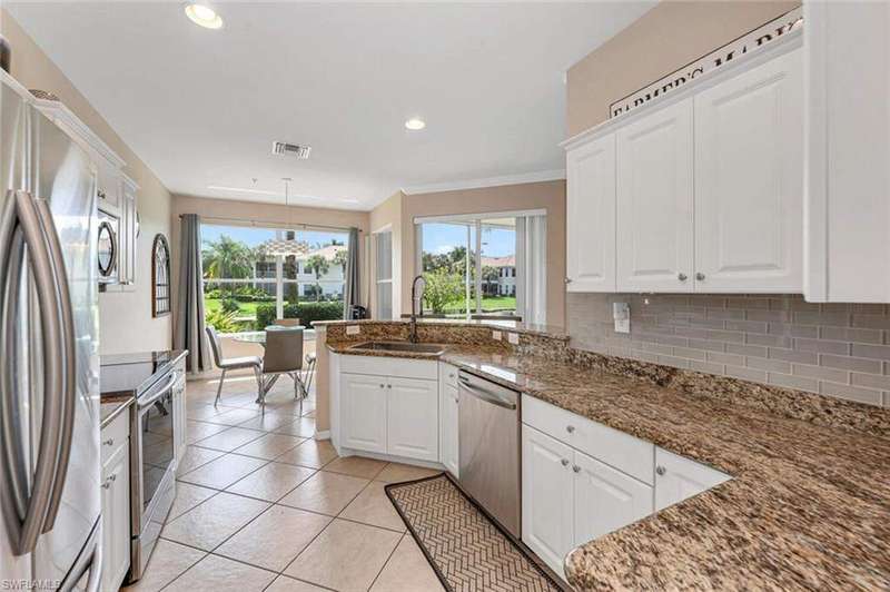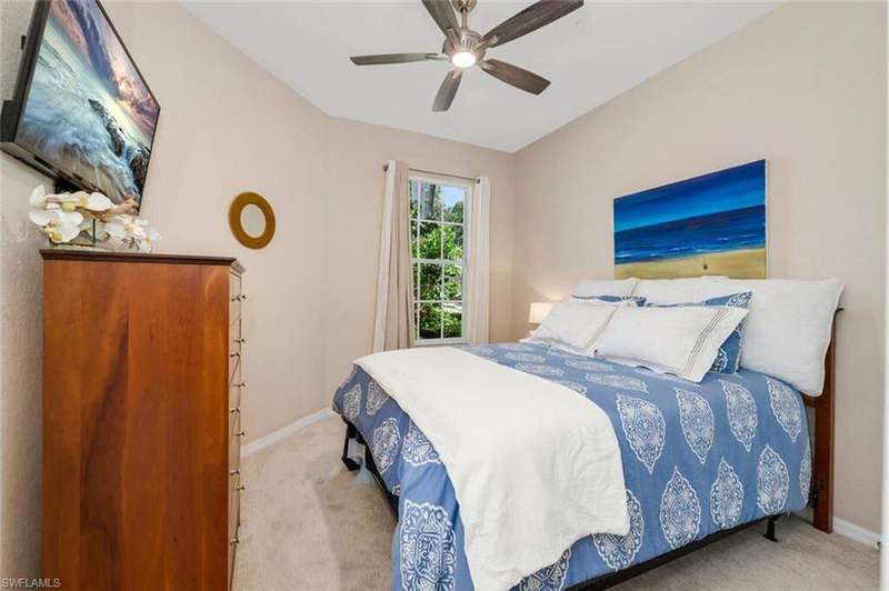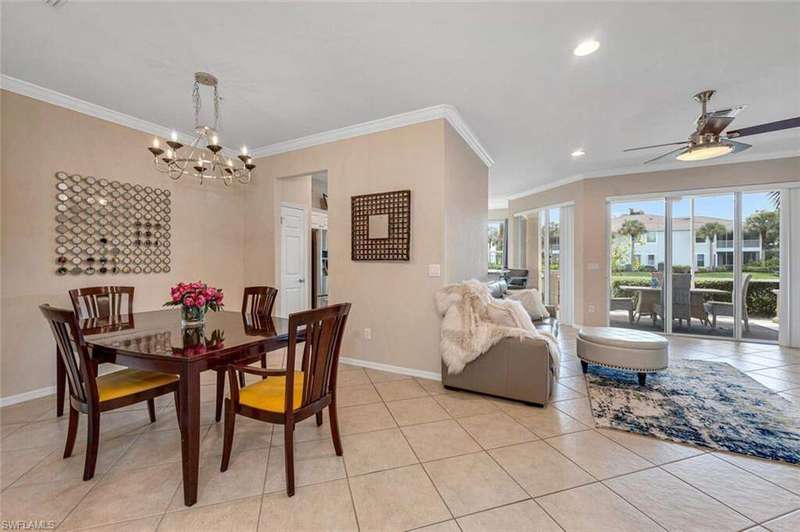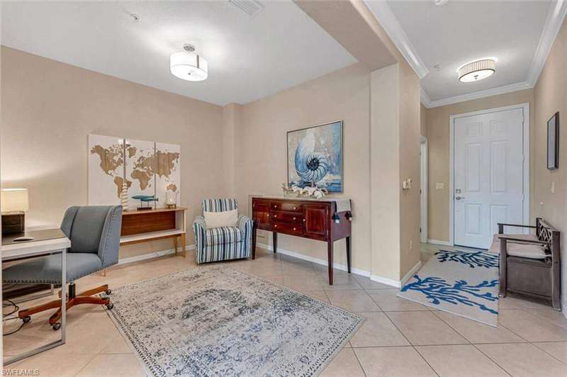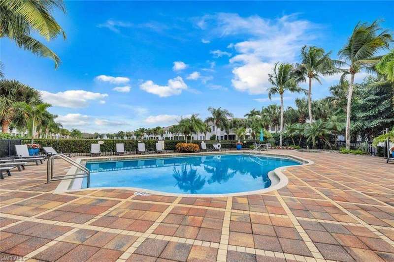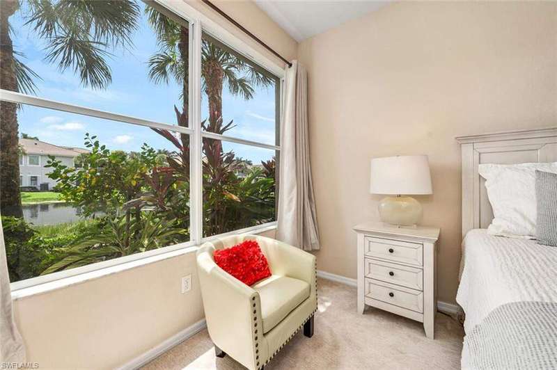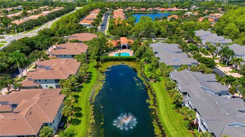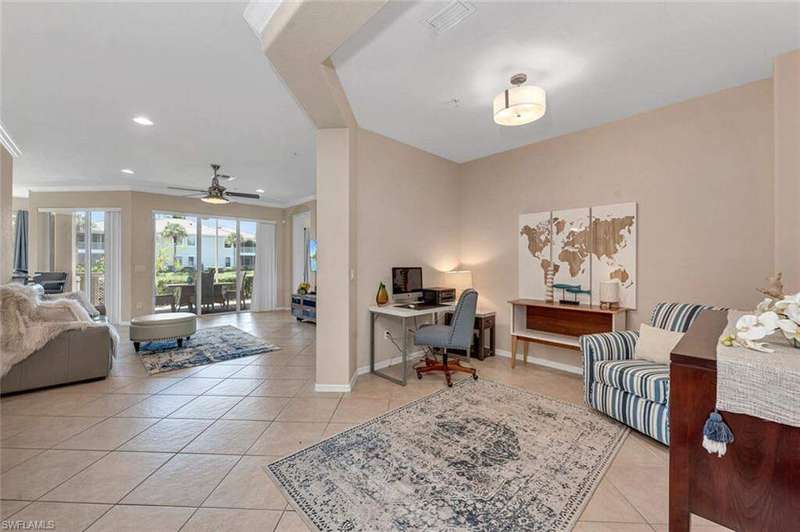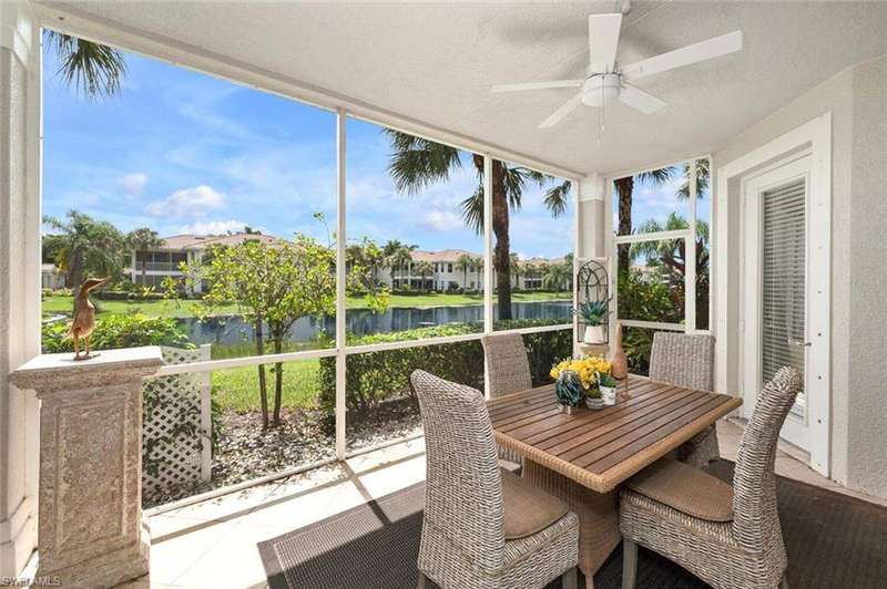 Available immediately! Beautiful turnkey furnished resort-like residence with fabulous water and sunset views in Central Naples' location! This 2195 total sq ft sq first-floor luxury residence in Aviano lives like a single-family house. Recently remodeled, it features 2Bed+Office/Den, 2 full baths, 1 car attached garage, oversized lanai with captivating lake/fountain and sunset views. Upgraded open kitchen has newer stainless appliances, granite countertops, pantry, breakfast bar, separate breakfast area. Formal dining and living rooms are designed for entertainment and family gatherings. Generous owner's suite has king size bed, sitting area, massive walk-in closet. Spa like Master Bathroom features large tub and separate shower. Spacious 2nd bedroom has good closet space. Den/office is perfect for work from home or could work as a family room/sleeping area for your guests. Top tier amenities include community pool, hot tub, clubhouse with gym and party room, boardwalk, all steps from this house. Coveted gated neighborhood of Aviano provides a luxury secure maintenance free lifestyle in a wooded setting with mature Oak and Royal Palm trees, 10 min driving to sandy gulfshore beaches and 5th Ave, A+ rated North Naples schools, great shopping and dining, the best of Naples at your fingertips. Strictly no pets. Long or short-term lease. Fully furnished. Rent includes Xfinity cable + Internet, water, trash removal. Tenants pay only the electrical bill.