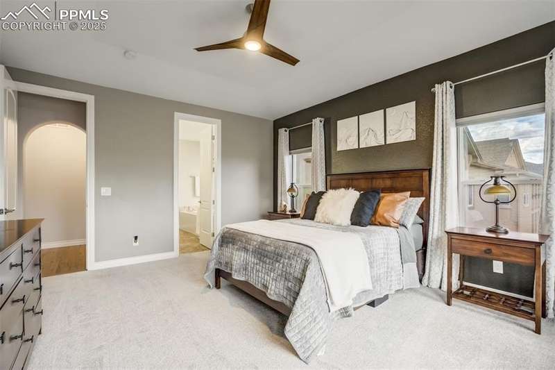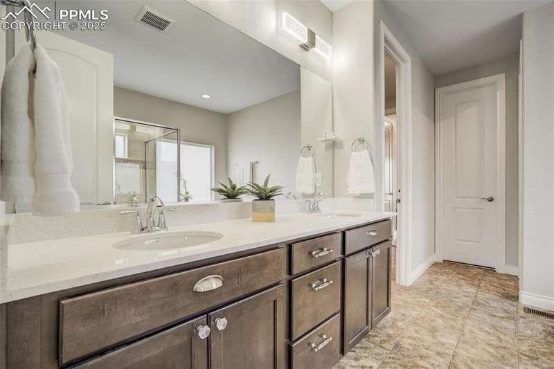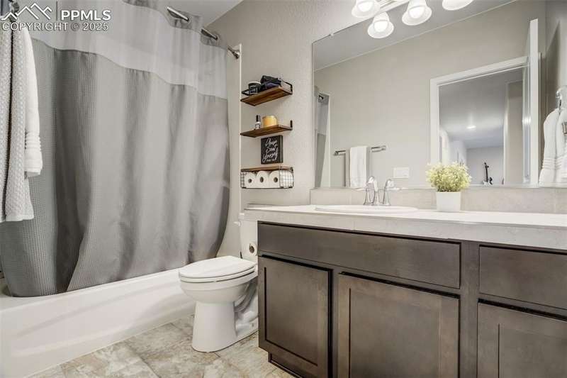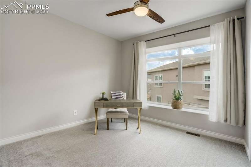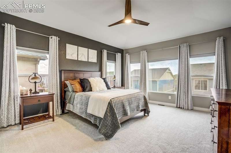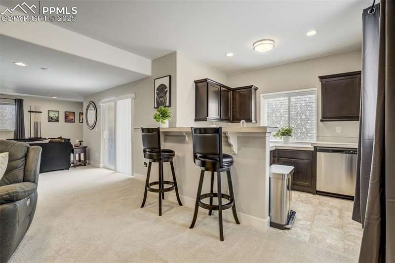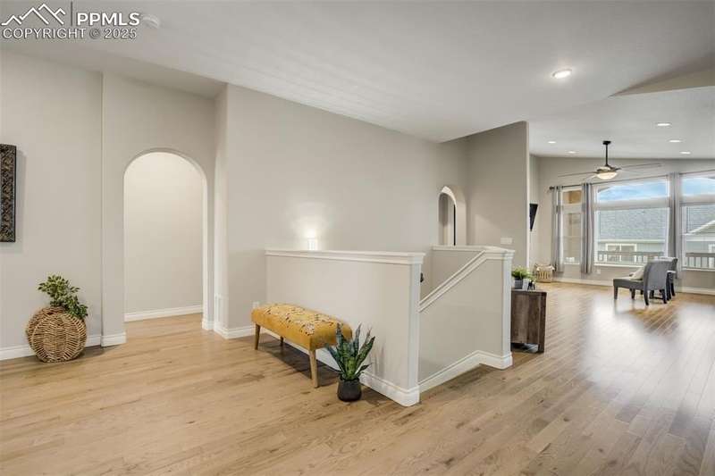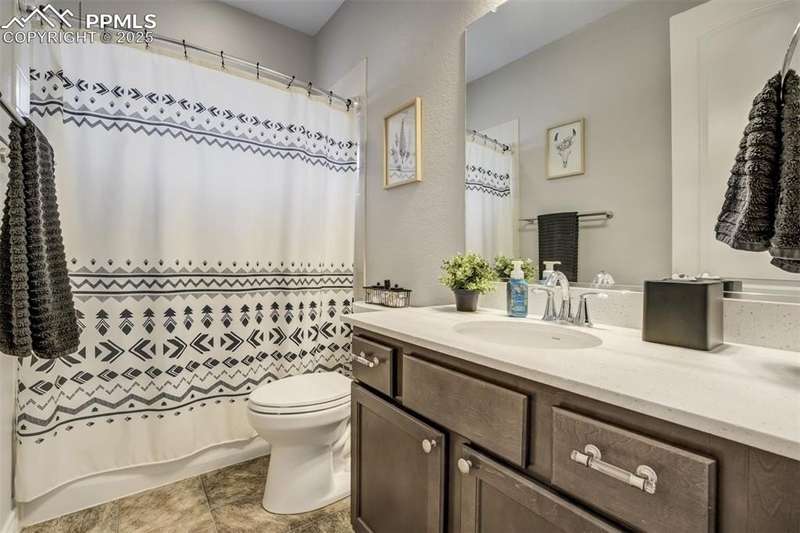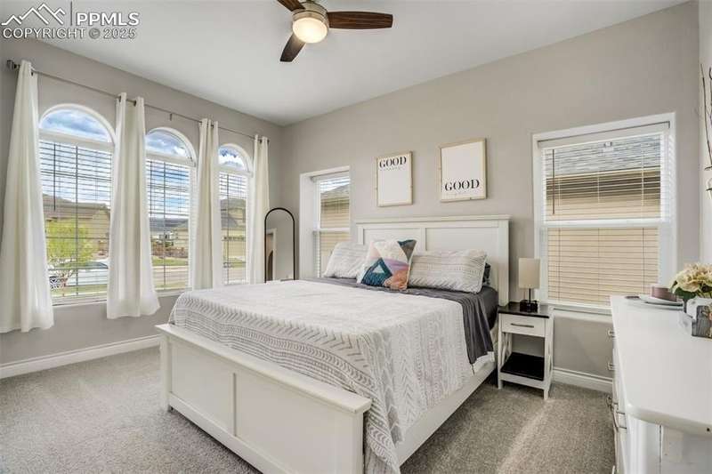 Discover the ideal combination of lifestyle and livability in this gorgeous home! Banning Lewis Ranch in Colorado Springs provides amazing amenities right in your community! This beautiful home is in immaculate condition and ready for you to move in! Picturesque windows illuminate the space with abundant natural light. Enjoy main level living with a spacious primary suite and 2 additional bedrooms and bath. An open floor plan with beautiful hardwood floors invites easy entertaining. The gourmet kitchen offers abundant cabinet and counters, gorgeous backsplash, and an oversized island with counter seating. The eat-in nook opens directly to a covered patio, ideal for grilling! A cozy fireplace with stone completes the family room perfectly! The newly completed walk-out basement with 9" ceilings provides a wonderful second living space! Enjoy a wet bar along with plenty of versatile space with above ground windows! Two additional bedrooms and bathroom, complete the space! Step into the covered back patio and notice the raised planter beds; the water feature provides a beautiful and peaceful focal point to enjoy! The solar panels are owned so you can enjoy the numerous benefits they provide!**Sellers have installed trees to help provide some privacy between neighbors Banning Lewis Ranch is known for outdoor enjoyment, community activities like concerts and farmers markets with food trucks and local vendors. There are courts for pickleball, tennis, and basketball and rec center/fitness center, pools, a splash water park, scenic walking trails, dog parks, and much more. Additionally, Banning Lewis Ranch Academy is sought after for academic excellence! The lifestyle is ideal and it also offers easy access to military installations too: 20 min Peterson SFB 30 min to Downtown Colorado Springs, COS Airport & AF Academy 40 min Schriever SFB & Fort Carson 75 min to Denver International Airport & Downtown Denver
