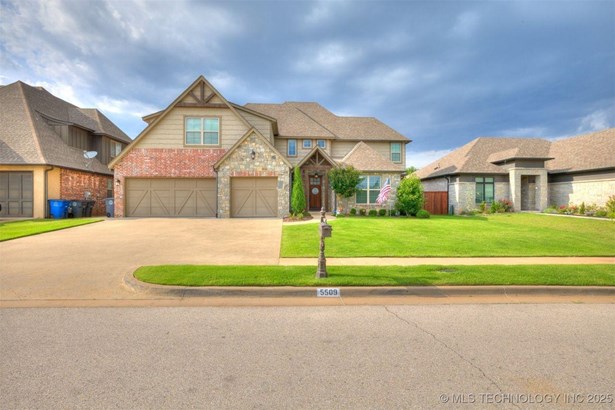 Custom design new construction on a cul de sac in Hyde Park. Flex room has closet and is large enough for third bedroom. Patio is enclosed and conditioned. Floors are wood or tile throughout. Foam rafter insulation. Ceilings are all 9-10 ft and vaulted in Living, and primary bedroom. Hyde Park is a gated 55+ neighborhood with a state of the art clubhouse. Clubhouse features full and catering kitchen space with dming or entertaining space to accomodate your extended family for any of your events, two indoor pickleball courts, conference room, gym, library, card and game rooms and outdoor pool, barbeque cookout area, putting green, outdoor patio areas, tennis court. Hyde Park borders Tulsa Hills mile long shopping center chocked full of shopping and restaurants.
