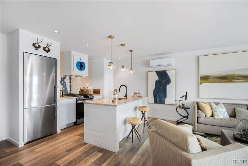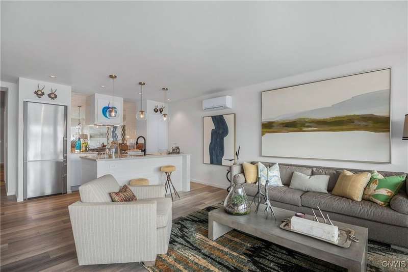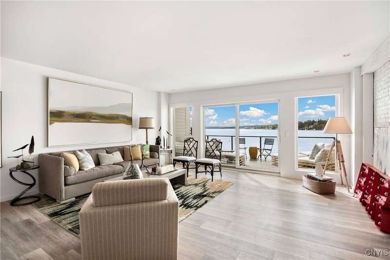 The breathtaking beauty of Skaneateles Lake in the village center is a sight to behold. This one-bedroom furnished waterfront apartment offers the perfect retreat for those seeking waterfront living. As you enter the apartment, you are greeted by stunning views of the lake that stretch out before you. The spacious living room is tastefully decorated with comfortable furniture to sit and enjoy the views. The kitchen is fully equipped with modern appliances and everything you need to entertain. Enjoy your morning coffee on the private balcony while taking in the stunning views of the lake. The bedroom is a cozy sanctuary, complete with its own en-suite bath with tiled shower and washer and dryer. Located in the heart of the village center, this apartment offers easy access to charming shops, quaint coffee shops shop, and fine dining establishments. Immerse yourself in the natural beauty of the surroundings and indulge in a truly relaxing and rejuvenating experience. Come and experience the magic of Skaneateles Lake and village living for yourself.