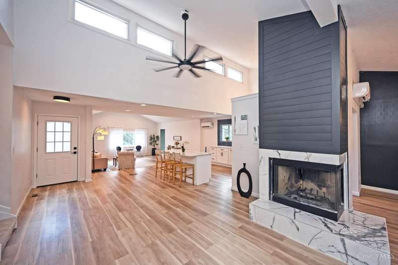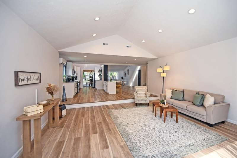 You wont want to miss this remodeled ranch on nearly an acre in a prime Loveland location! Enjoy a vaulted, expanded floor plan with a bright entry, spacious living room and family room, and stunning quartz kitchen with stainless appliances and a center island. Open living and dining areas feature a statement fireplace, while the primary suite offers a walk-in closet and dual vanity bath. Designer finishes shine throughout with LVP flooring & new carpet in the bedrooms. Vaulted ceiling and lots of natural light fill this home. Relax on the large back deck overlooking the private, tree-lined yard. Full basement, carport, and extra parking! New HVAC & HWH, roof is only a couple years old.