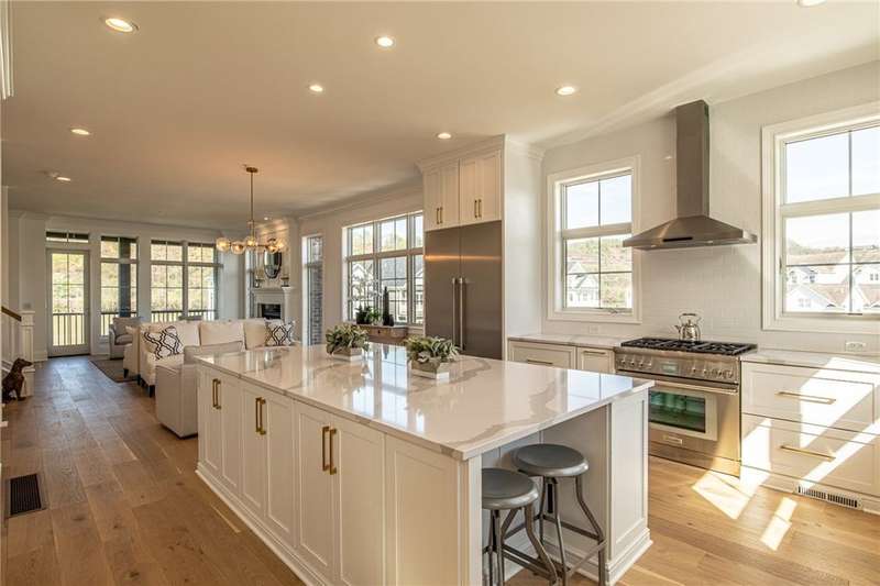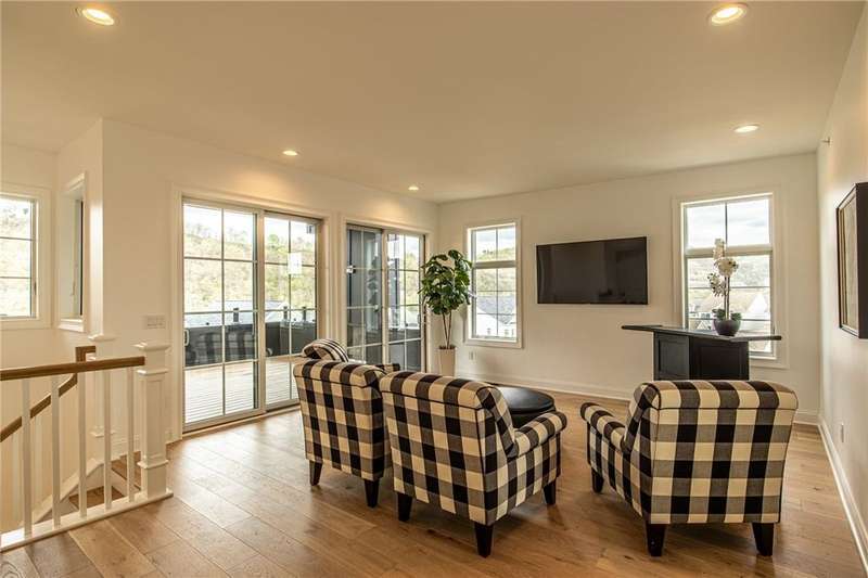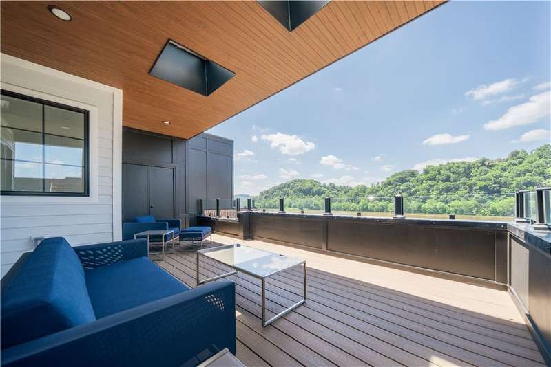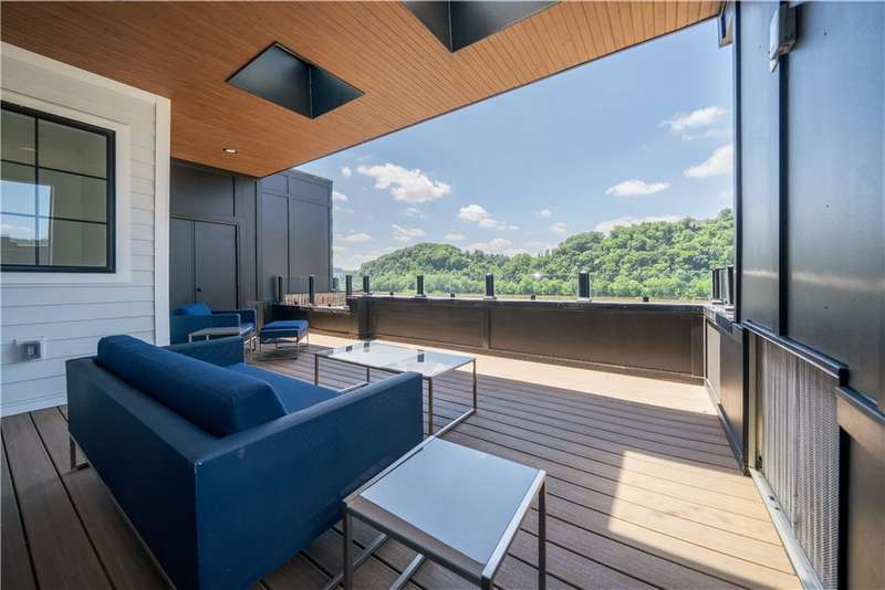 Move in ready at The River's Edge of Oakmont! Packed with high-end upgrades, this elegant Brownstone offers luxury living in one of Pittsburgh's most desirable communities. Nestled along the scenic Allegheny River, The River's Edge combines timeless architecture w/modern amenities. The Brownstones stand out with distinctive brick & stone exteriors. Inside you'll find a private in-home elevator w stop in garage for easy access and a spacious open-concept main level designed for effortless living. The chef's kitchen features premium Thermador appliances, a large center island, sitting area w/fireplace and upscale finishes throughout. Enjoy multiple private porches and a spectacular top floor terrace with built-in fireplace, both covered & uncovered open-air spaces with stunning views, and adjacent bonus room. Residents enjoy the riverfront clubhouse with pool, fitness center, event space, & walking trail. HOA covers yard maintenance and snow removal. Live with a view!