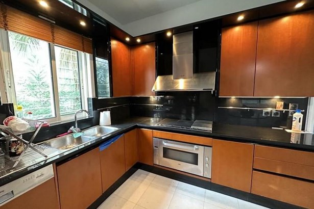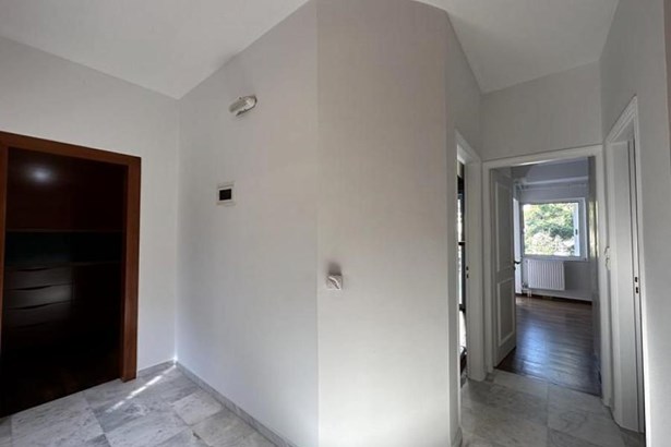 The maisonette features an independent kitchen and plenty of storage space that leads to a dining area and living room, complete with a cozy fireplace, perfect for family gatherings or entertaining guests. The large verandas offer stunning views of the surrounding greenery, making it an ideal place to unwind after a long day.