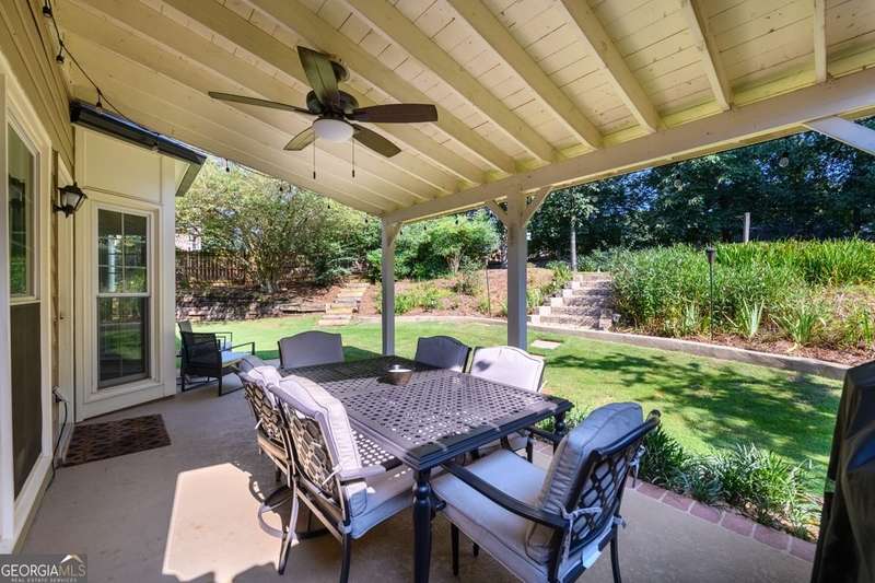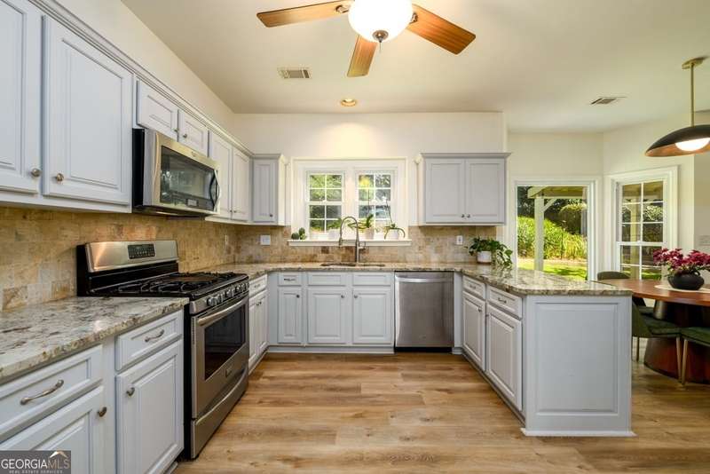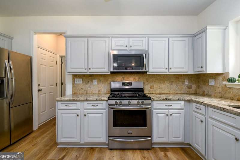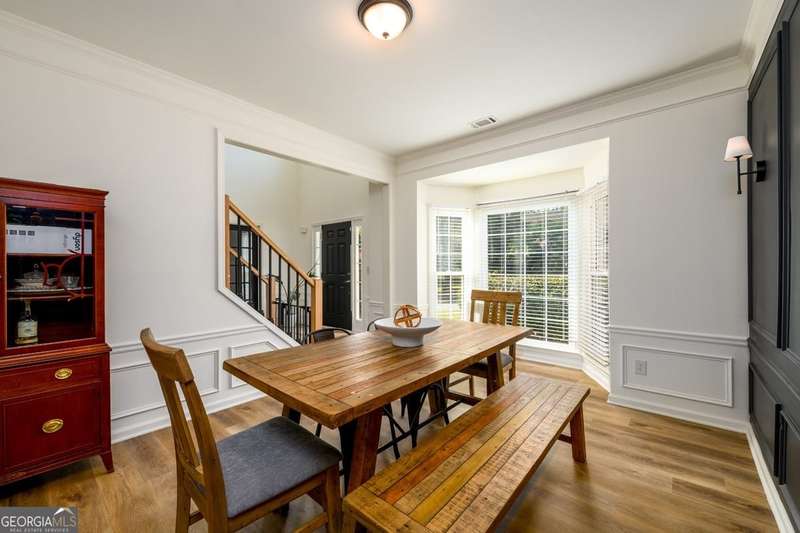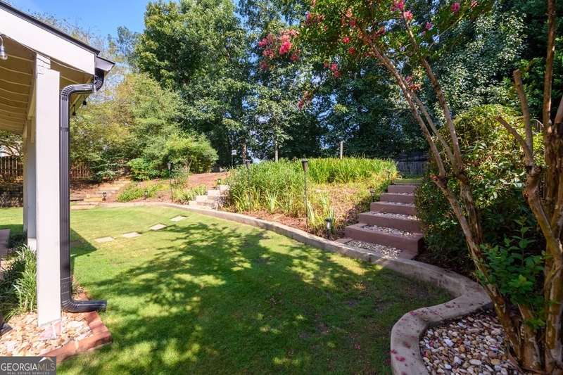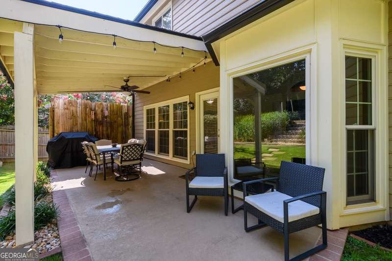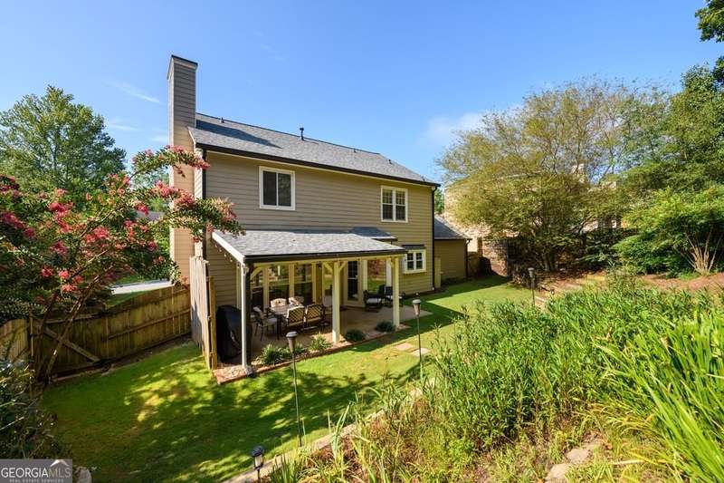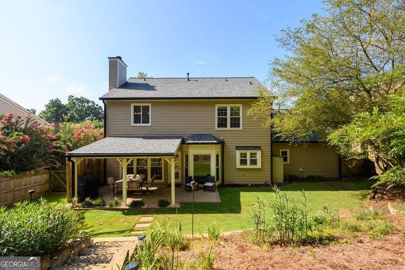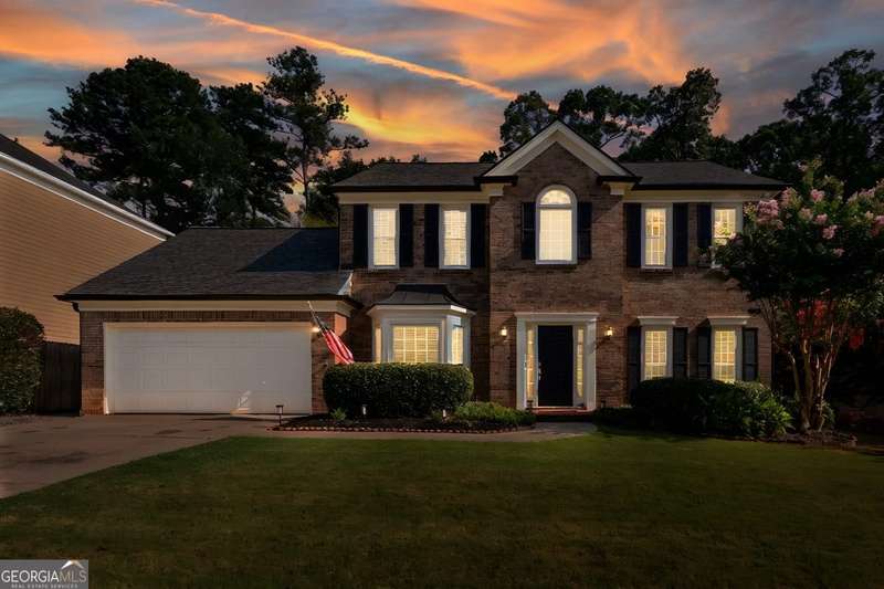 Welcome to this stunning home that embodies the perfect blend of classic and modern charm. This meticulously maintained two-story home features a brick facade that exudes warmth and sophistication. Upon arrival, you are greeted by a beautifully landscaped front yard, meticulously manicured grass, and vibrant flora that create a welcoming atmosphere. The inviting entrance leads you into a spacious two-story foyer, where you will immediately appreciate the thoughtful design and flow of the layout. The home boasts an ample amount of windows, allowing natural light to flood the living spaces, making each room feel bright and airy. You will find a cozy and inviting family room, perfect for gatherings or quiet evenings, seamlessly connecting to the chef's delight kitchen, featuring modern appliances and ample counter space for meal preparation, striking the perfect balance between functionality and style. Enjoy family meals in the charming eat-in kitchen, where a picturesque bay window frames tranquil views of your private, serene backyard. Step outside to an enchanting private backyard that is designed for relaxation and entertainment. A covered patio invites you to grill, dine alfresco or simply unwind after a long day. The fenced yard offers decorative stone steps leading to a versatile terraced yard-ideal for cozy evenings around a fire pit, cultivating your favorite vegetables or creating a play area, With a blend of indoor comforts and outdoor tranquility, this residence offers an idyllic lifestyle for those seeking both relaxation and entertainment. Don't miss out on the chance to own this piece of paradise that combines comfort, style, and exceptional outdoor living in one fabulous property.