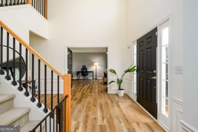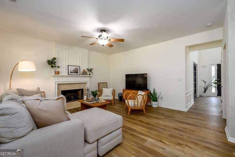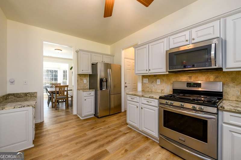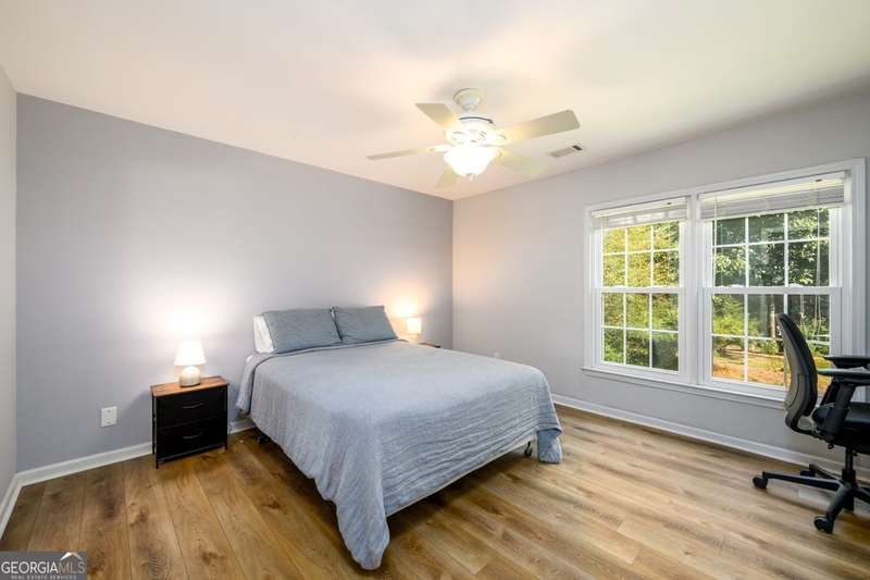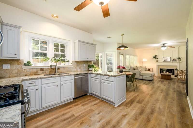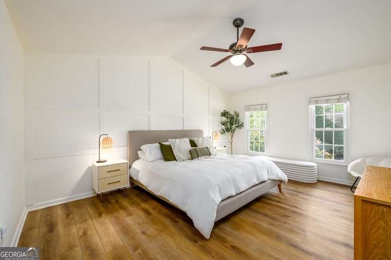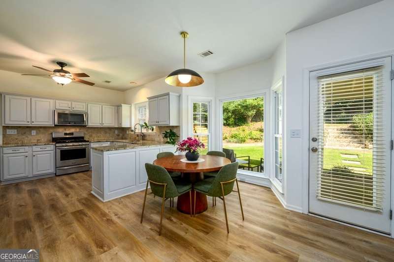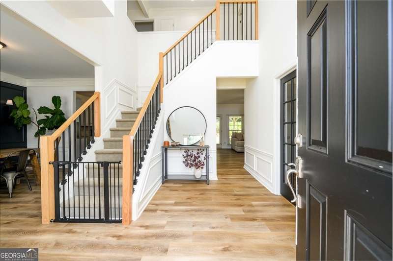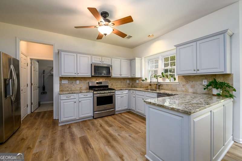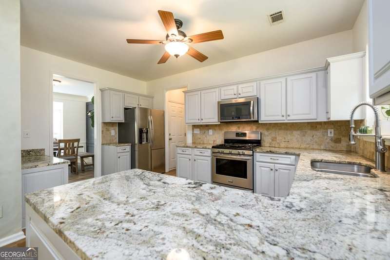 Welcome to this stunning home that embodies the perfect blend of classic and modern charm. This meticulously maintained two-story home features a brick facade that exudes warmth and sophistication. Upon arrival, you are greeted by a beautifully landscaped front yard, meticulously manicured grass, and vibrant flora that create a welcoming atmosphere. The inviting entrance leads you into a spacious two-story foyer, where you will immediately appreciate the thoughtful design and flow of the layout. The home boasts an ample amount of windows, allowing natural light to flood the living spaces, making each room feel bright and airy. You will find a cozy and inviting family room, perfect for gatherings or quiet evenings, seamlessly connecting to the chef's delight kitchen, featuring modern appliances and ample counter space for meal preparation, striking the perfect balance between functionality and style. Enjoy family meals in the charming eat-in kitchen, where a picturesque bay window frames tranquil views of your private, serene backyard. Step outside to an enchanting private backyard that is designed for relaxation and entertainment. A covered patio invites you to grill, dine alfresco or simply unwind after a long day. The fenced yard offers decorative stone steps leading to a versatile terraced yard-ideal for cozy evenings around a fire pit, cultivating your favorite vegetables or creating a play area, With a blend of indoor comforts and outdoor tranquility, this residence offers an idyllic lifestyle for those seeking both relaxation and entertainment. Don't miss out on the chance to own this piece of paradise that combines comfort, style, and exceptional outdoor living in one fabulous property.