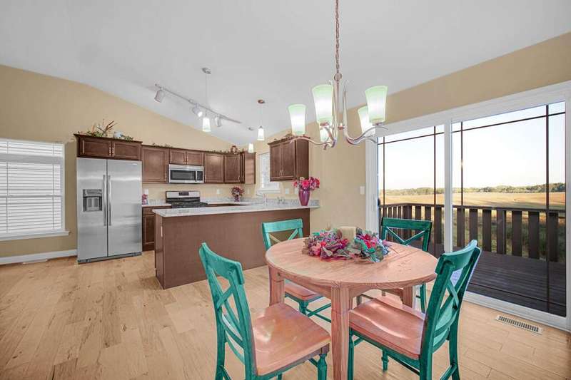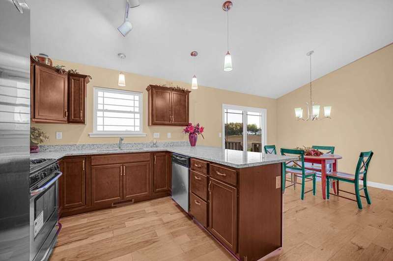 This spacious four-bedroom, two-and-a-half-bath ranch offers comfort and functionality across 2,383 square feet of finished living space. Hardwood flooring flows through the main level, enhancing the warm and inviting interior. The kitchen features stainless steel appliances, granite countertops, and a convenient main floor laundry area nearby. The primary bedroom provides a peaceful retreat within the thoughtfully designed layout.The finished walk-out basement offers added versatility with a generous family room, a flexible-use room, an additional bedroom perfect for use as an office, and a half bath. Modern amenities include a tankless hot water heater and a high-efficiency furnace. Step outside to enjoy the elevated wood balcony or relax in the fenced backyard.A two-car garage with additional storage completes this well-appointed home. With quality finishes throughout, this property combines comfort, convenience, and style in one appealing package.