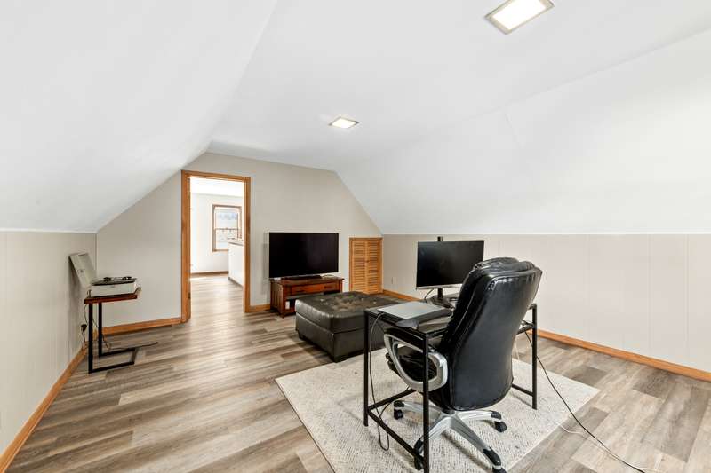 Crisp cape cod in the most convenient of areas! You can walk to Trader Joe's, Starbucks, Target and hop the shuttle for your next Brewer game at Jacksons! There is also a bus stop right down the street and a trail for exploring. Low maintenance exterior with vinyl siding. Enjoy the large level yard and entertain in the big backyard with a large deck and patio area. A soothing color palette complements the beautiful oak hardwood floors that flow through the living room and two bedrooms on the main level. Large windows bathe the area in natural light. Efficient design kitchen is loaded with cabinets and includes the appliances. An adjoining dinette is the perfect spot for daily or special occasion dining. Split bedroom plan with two nice sized bedrooms on the first floor equipped with big closets. Upstairs, you will find bedroom #3 which can also be utilized as your flex room. The luxury vinyl plank flooring covers the kitchen, dinette, breezeway and upstairs. The basement was all dry after the historic August flood. Beat the high cost of rent and enjoy homeownership!