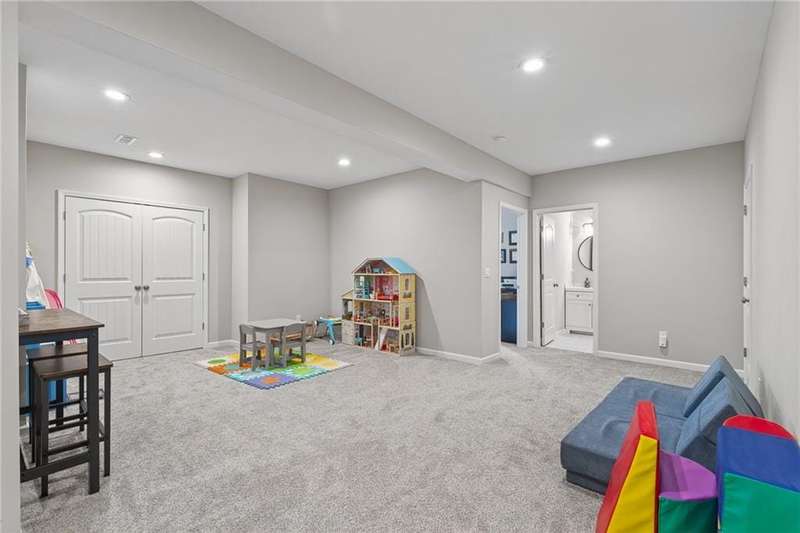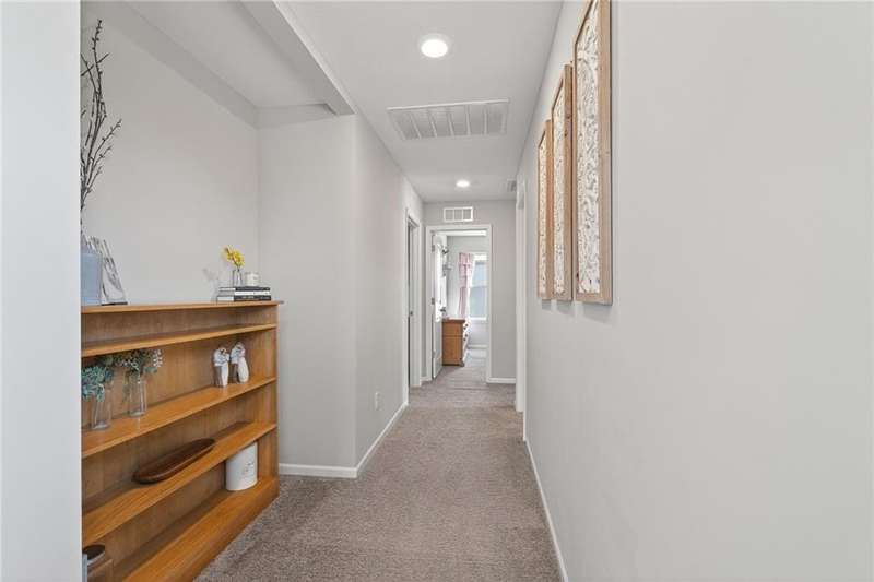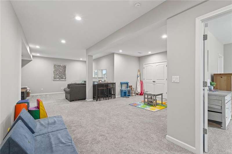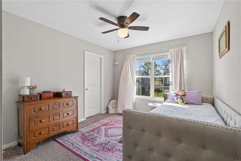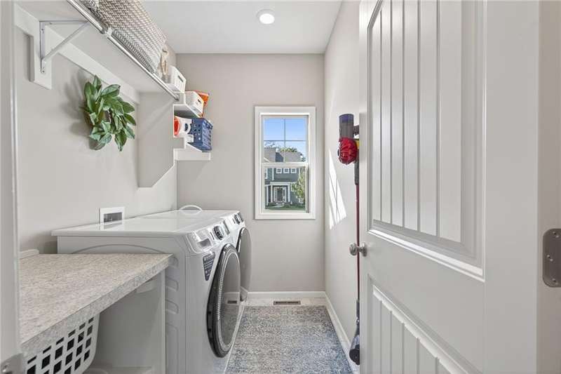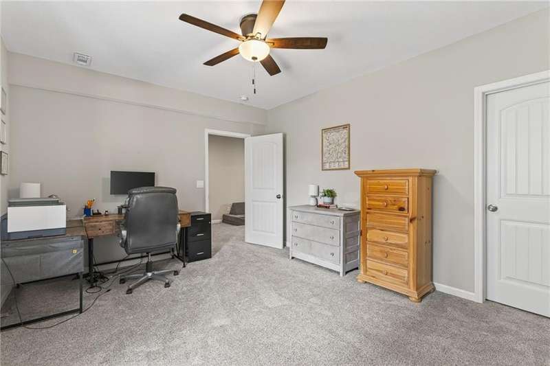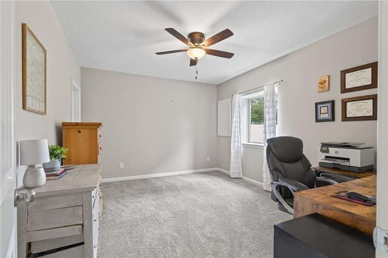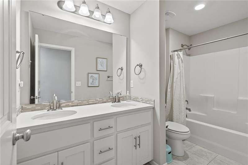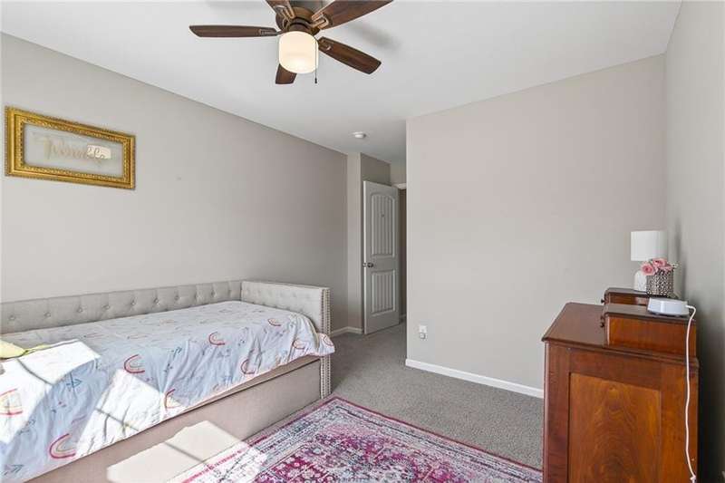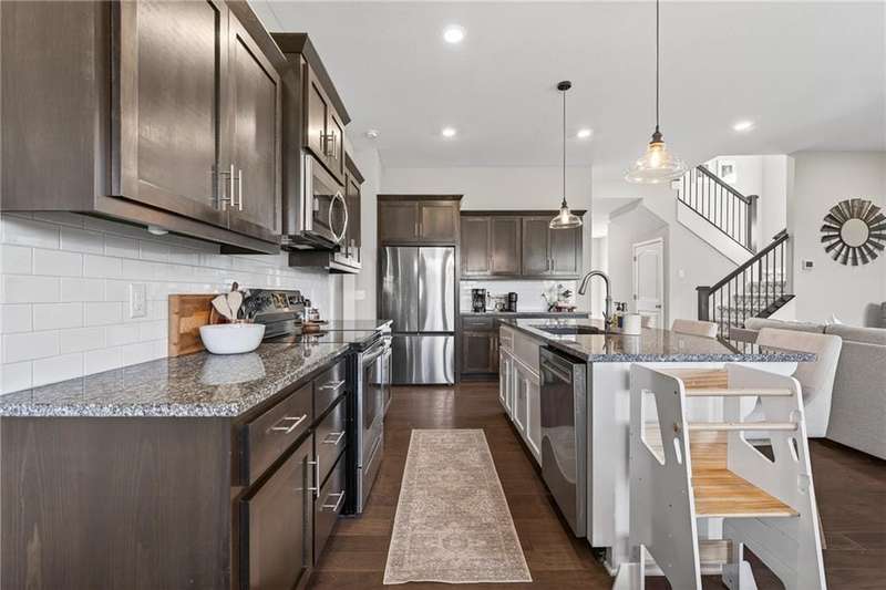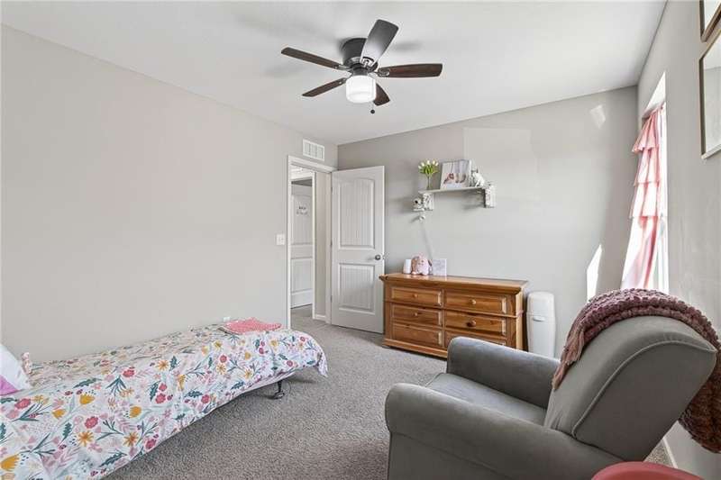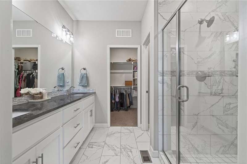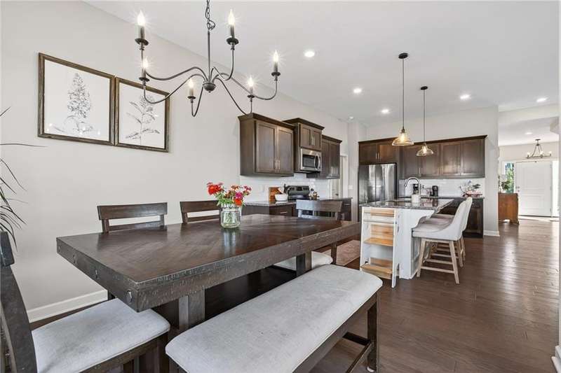 Beautiful 5 bedroom, 3.5 bath, 1.5 story home with a 3 car garage located in the highly sought after Estates of Wolf Creek,Johnson County, Spring Hill. The main floor features a spacious primary suite with vaulted ceiling, ceiling fan, walk-in closet, double vanity, tiled floor, walk-in shower, and stunning views of the pond. Three additional bedrooms are located upstairs, while the daylight finished basement offers a family room, rec room, fifth bedroom, and a third full bath. The great room boasts wood floors and a cozy stone fireplace, and outdoor living is enhanced by a deck and covered deck, perfect for enjoying pond views and breathtaking Kansas sunsets. Sprinkler System! Enjoy all the amenities this beautiful community offers, including a scenic pond, walking trails, and a neighborhood pool.