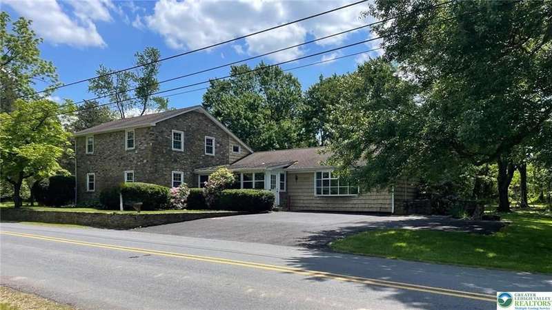 Nestled on 11 picturesque acres, this charming Stone and Cedar farmhouse offers the perfect blend of rustic beauty and modern convenience. Featuring gorgeous hardwood floors throughout, the home boasts 3 spacious bedrooms, including a convenient first-floor suite, and 3 full baths, ensuring ample space for family and guests. The heart of the home is the expansive kitchen and dining area, views of exposed stone and pane glass walls, ideal for family gatherings and entertaining. An environment to spend hours just enjoying the architecture design. Step outside to a stunning flagstone patio, perfect for relaxing or enjoying the serene surroundings. Need additional space? The garage has been thoughtfully converted into a versatile studio, office or family room. The property also includes several buildings for vehicle storage, contractors workspace or raising animals and there's a detached building with an office area, and interior storage offering endless possibilities for work, hobbies, or expansion. All outbuildings are accessible by private road. Whether you're looking to embrace a peaceful country lifestyle or create a personalized retreat, this farmhouse has it all. Make it yours today and experience the perfect balance of comfort and charm!