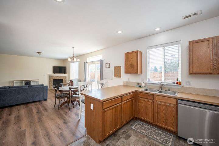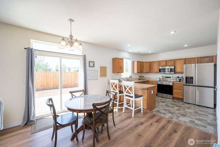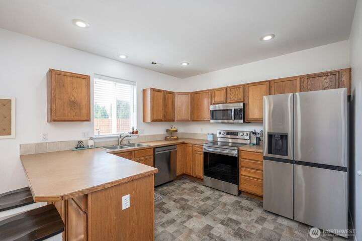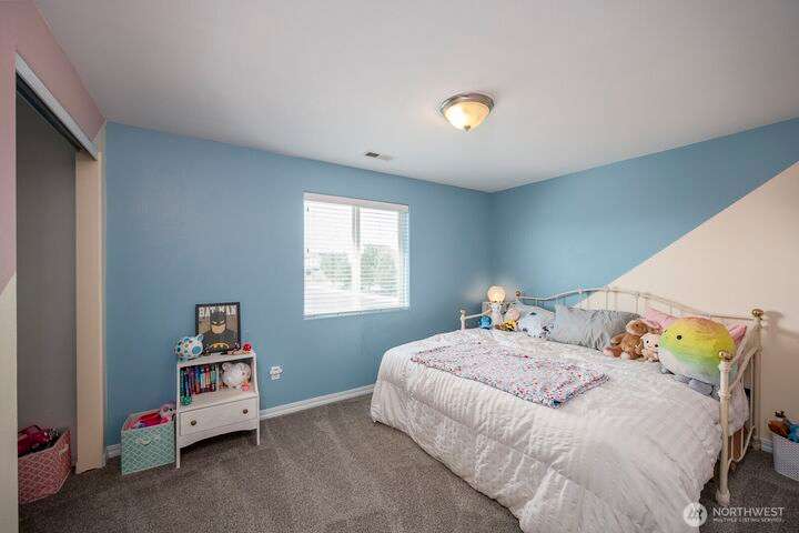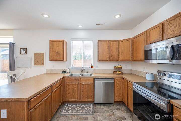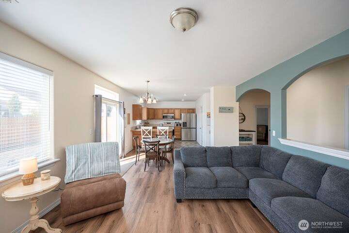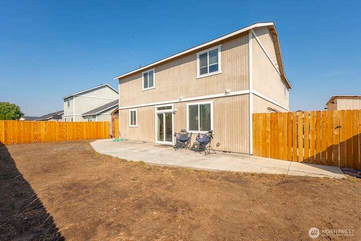Spacious home in a desirable neighborhood close to schools, parks, and town! This well-maintained property offers 4 large bedrooms, 2.5 bathrooms, and a generous living room with 9-foot ceilings. The light, airy kitchen flows into the main living area, while the primary suite includes its own bath. A bonus room upstairs adds flexibility as a 5th bedroom or office. Updates include new appliances, paint, flooring, HVAC, windows, and fencing. The insulated garage adds comfort, while fully fenced side yards, gated access, and a freshly seeded backyard backing a quiet church property ensure privacy.