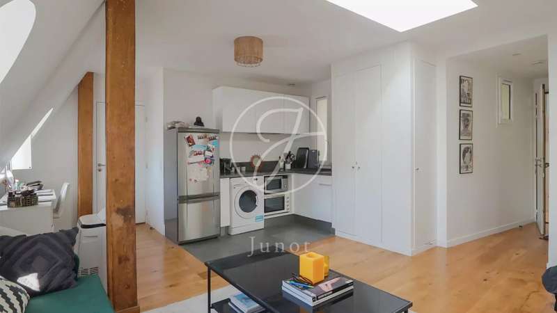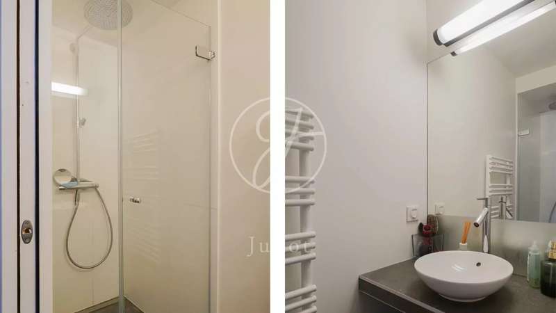 Right next to Avenue Montaigne, on the 6e floor of a character building, 33.1m² apartment accessible by elevator then stairs. It comprises an entrance hall with cupboard, a living room with kitchenette and storage space, a bedroom, a shower room and separate WC. A quiet, functional property in the heart of the Golden Triangle. Currently rented : 1219€ HC/Month