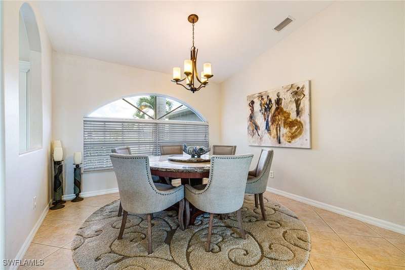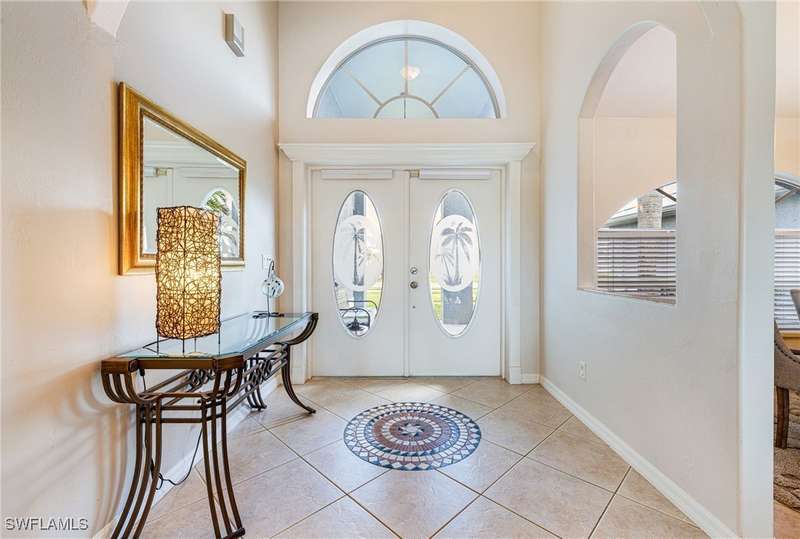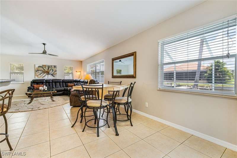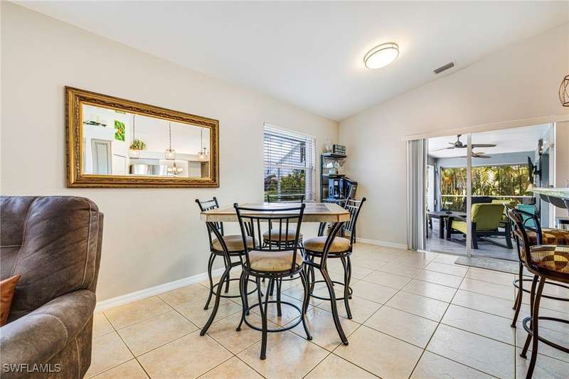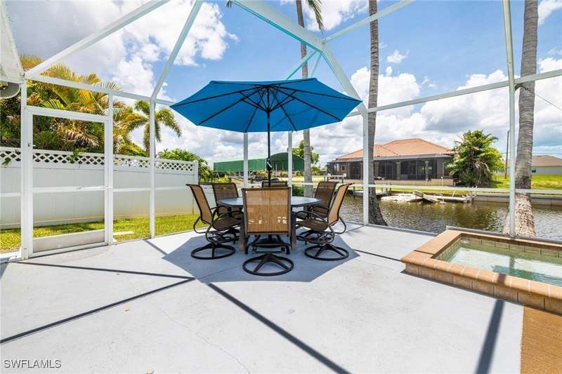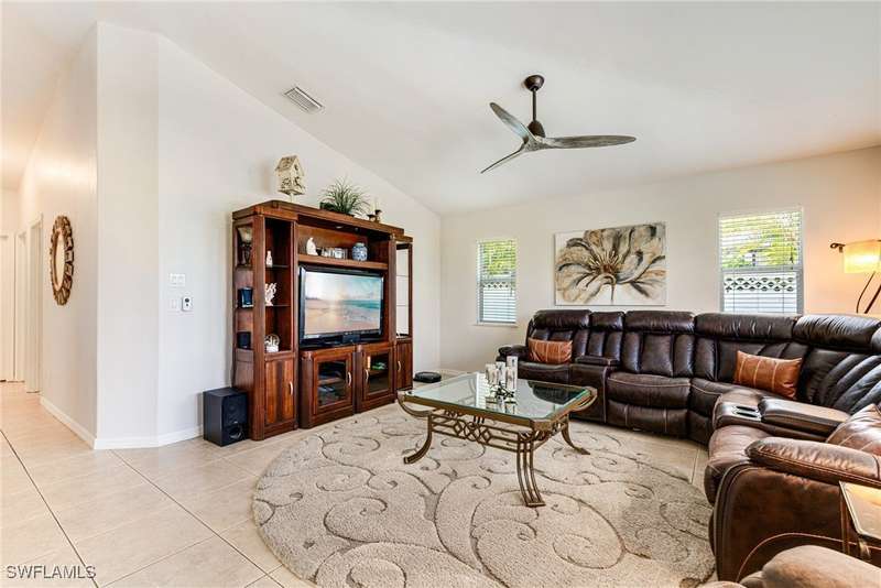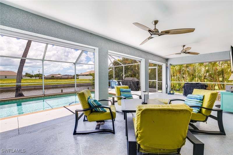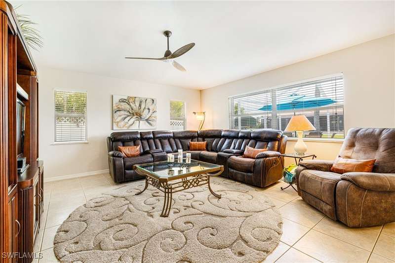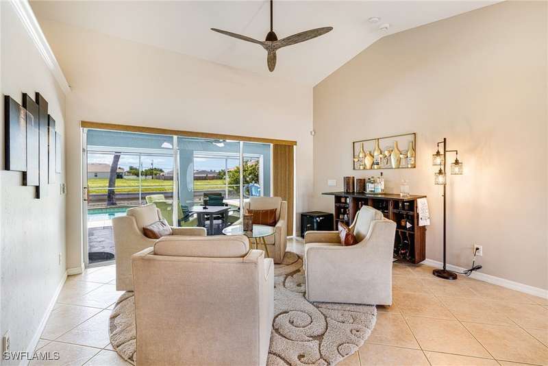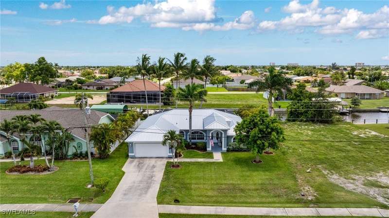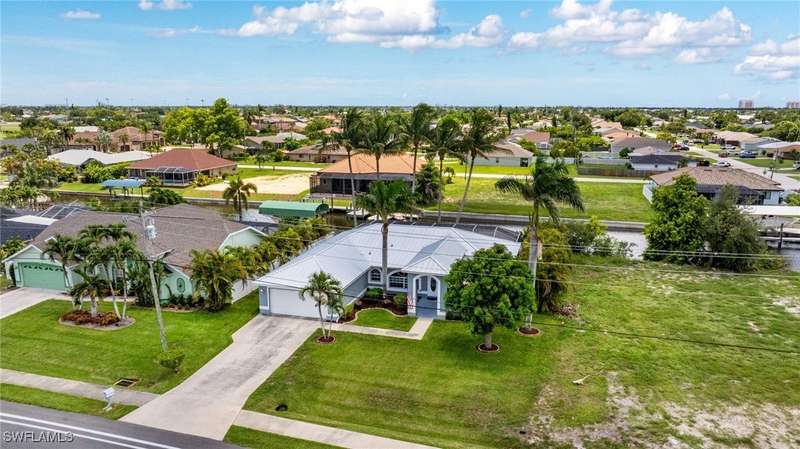 Beautifully Updated SW Gulf Access Pool Home with Southern Exposure! Welcome to your dream home in sunny Southwest Florida! This lovingly maintained and thoughtfully updated waterfront pool home offers the perfect blend of style, comfort, and convenience - all set on a Gulf-access canal with highly desirable Southern exposure on the pool for sun-filled days year-round. Step inside to over 2,000 square feet of living space under air, featuring tile flooring throughout, cathedral ceilings, and an open, airy layout. The spacious entry leads into a welcoming living and dining area, where large sliders open to a generously covered lanai, ideal for seamless indoor-outdoor living. The heart of the home is the open-concept kitchen and cozy breakfast nook, also featuring direct access to the pool and lanai - perfect for entertaining or enjoying quiet waterfront views. The owner's suite is privately tucked away, offering a serene retreat with dual closets, dual vanities, a walk-in shower, a soaking tub, and its own sliders to the pool area. Two guest bedrooms are located on the opposite side of the home for added privacy and flexibility. Outside, the lush landscaped yard feels like a private Florida oasis - complete with a fruit-bearing mango tree and space to relax or entertain. For peace of mind, the home includes electronic storm shutters across the back and a removable pool fence for family safety. Recent Improvements and Upgrades Include but not limited to: New Pool Heater (2025), New Pool Pump (2021), New AC Condenser (2024), New Metal Roof (Post-Hurricane Ian, 2023), New Dishwasher (2023), Refrigerator (2022), Induction Stove (2020), Sliders Serviced & Adjusted (2024), New Garage Door Springs (2024), Exterior Painted (2018), Updated Lighting & Ceiling Fans...and more! This home is move-in ready, meticulously cared for, and truly a must-see. Schedule your private showing today and start living the Florida lifestyle you've been dreaming of!
