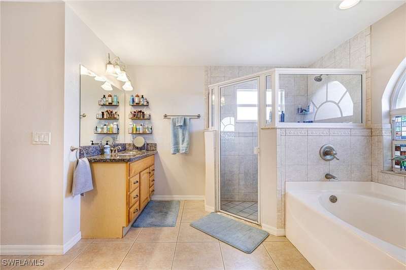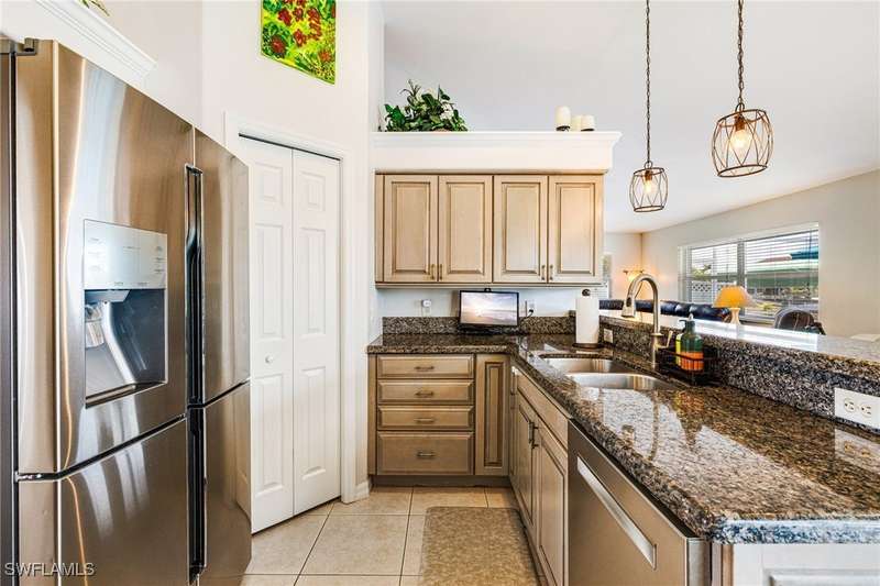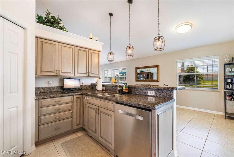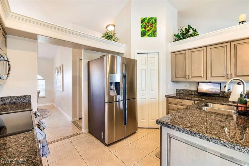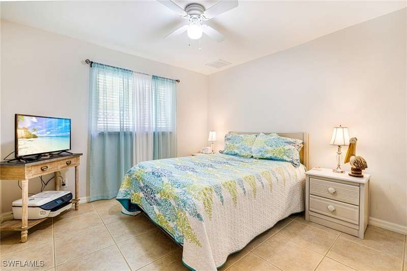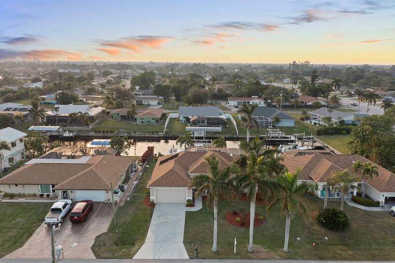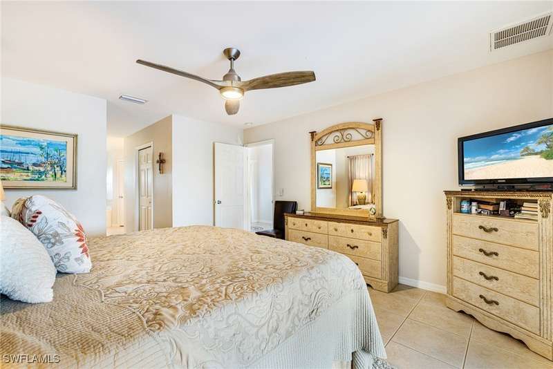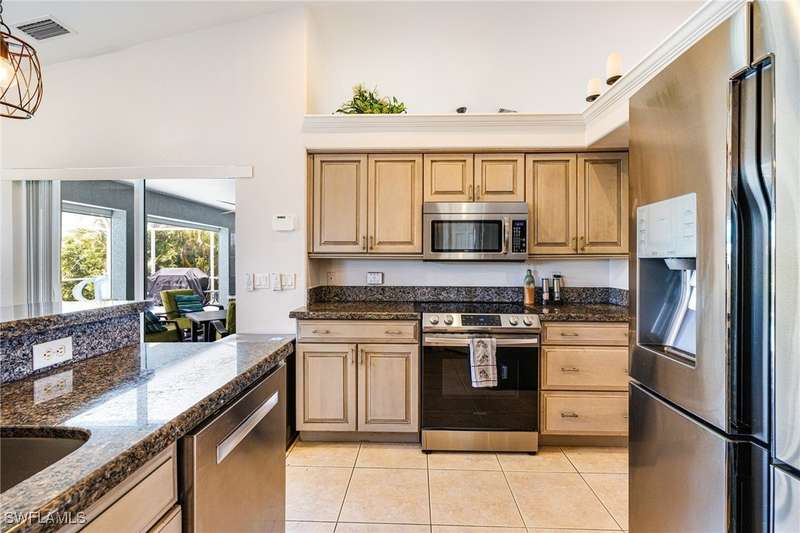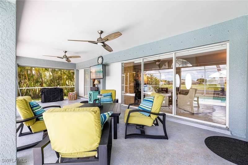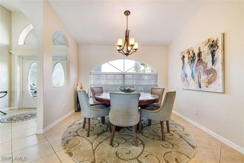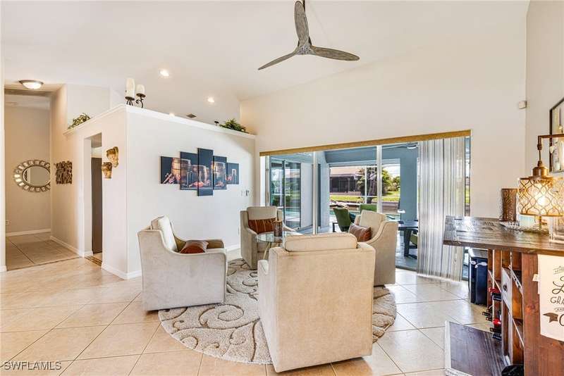 Beautifully Updated SW Gulf Access Pool Home with Southern Exposure! Welcome to your dream home in sunny Southwest Florida! This lovingly maintained and thoughtfully updated waterfront pool home offers the perfect blend of style, comfort, and convenience - all set on a Gulf-access canal with highly desirable Southern exposure on the pool for sun-filled days year-round. Step inside to over 2,000 square feet of living space under air, featuring tile flooring throughout, cathedral ceilings, and an open, airy layout. The spacious entry leads into a welcoming living and dining area, where large sliders open to a generously covered lanai, ideal for seamless indoor-outdoor living. The heart of the home is the open-concept kitchen and cozy breakfast nook, also featuring direct access to the pool and lanai - perfect for entertaining or enjoying quiet waterfront views. The owner's suite is privately tucked away, offering a serene retreat with dual closets, dual vanities, a walk-in shower, a soaking tub, and its own sliders to the pool area. Two guest bedrooms are located on the opposite side of the home for added privacy and flexibility. Outside, the lush landscaped yard feels like a private Florida oasis - complete with a fruit-bearing mango tree and space to relax or entertain. For peace of mind, the home includes electronic storm shutters across the back and a removable pool fence for family safety. Recent Improvements and Upgrades Include but not limited to: New Pool Heater (2025), New Pool Pump (2021), New AC Condenser (2024), New Metal Roof (Post-Hurricane Ian, 2023), New Dishwasher (2023), Refrigerator (2022), Induction Stove (2020), Sliders Serviced & Adjusted (2024), New Garage Door Springs (2024), Exterior Painted (2018), Updated Lighting & Ceiling Fans...and more! This home is move-in ready, meticulously cared for, and truly a must-see. Schedule your private showing today and start living the Florida lifestyle you've been dreaming of!