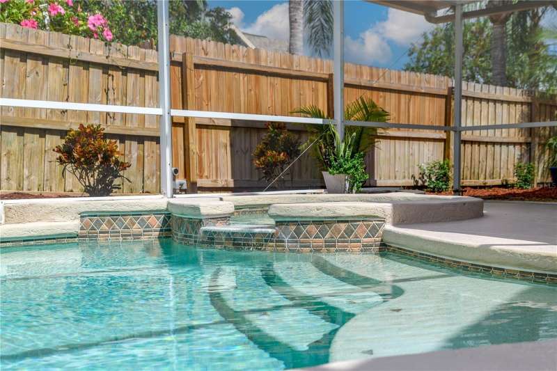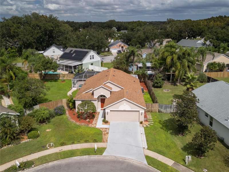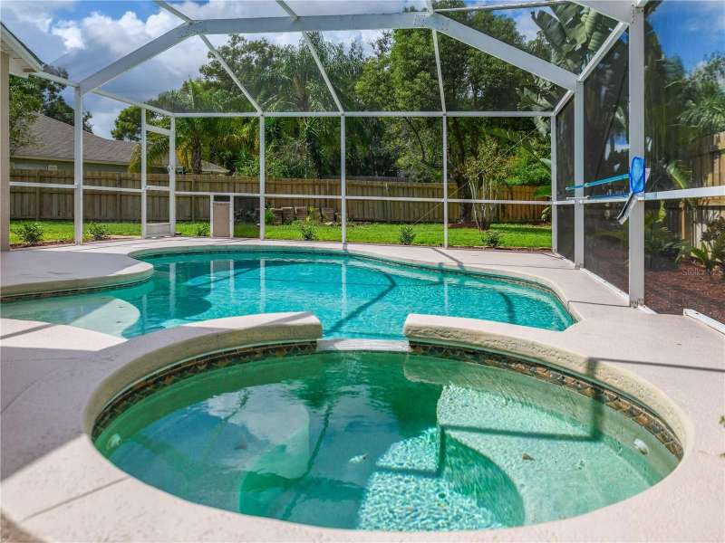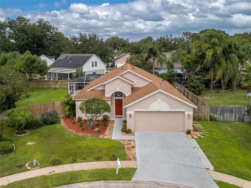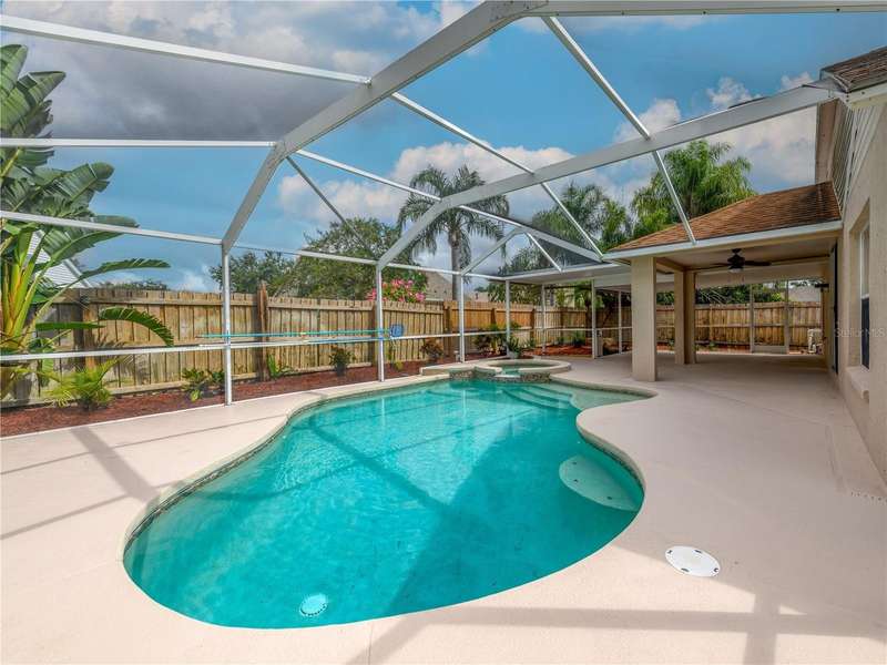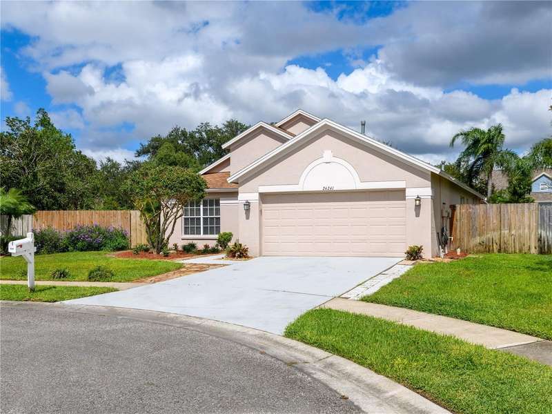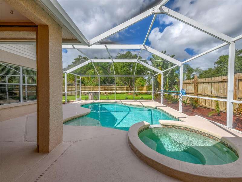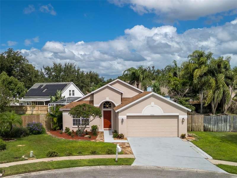 Under contract-accepting backup offers. 4/2/2 Beautiful Inland "Bradford" Model Home in the Oak Grove Subdivision of New Tampa/Lutz near Tampa Premium Outlet Mall. This home is located on a premium cul-de-sac lot with lush landscaping. Fresh new interior paint, freshly painted exterior front door and painted garage floor. Fenced-in back yard features the outdoor extended-screened lanai with pool and a spa. The eat-in kitchen features reticulated ceramic tile flooring, oak wood cabinets and granite countertops with stainless-steel appliances and gas range. No carpeting throughout. In the spacious primary-suite, there are two separate closets, two separate sinks and garden tub. All bedrooms have engineered wood flooring. All appliances included. Gas Water Heater (2016); HVAC with heat pump (2024); Roof (2019); Extended Covered Lanai (2021). LOW HOA, NO CDD and NO FLOOD INSURANCE REQUIRED. This is a perfect location to I-275, just minutes to the Tampa Premium Outlet and Shopping and Restaurants galore. Advent Hospital, State of the Art Ice Arena and everything you need!
