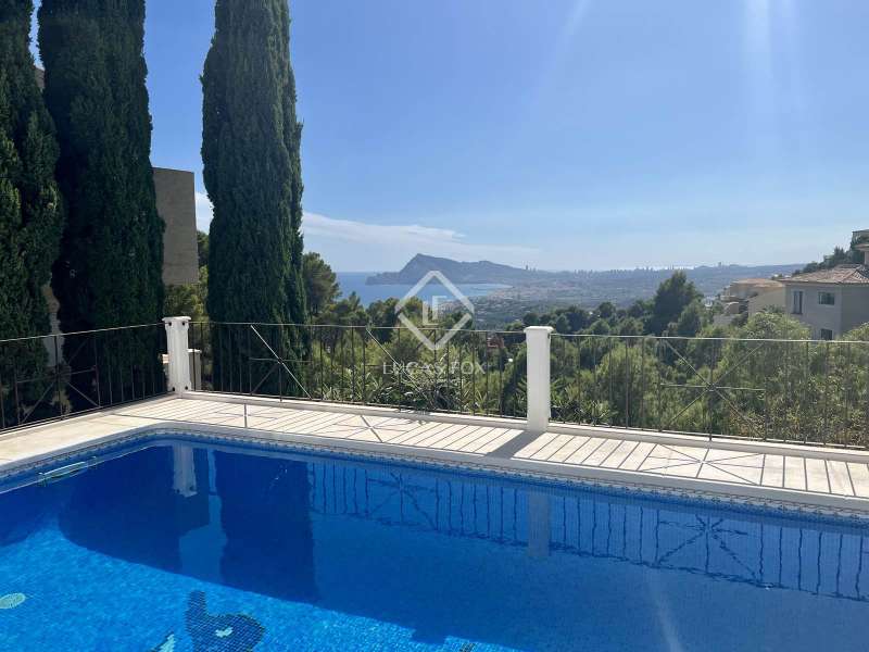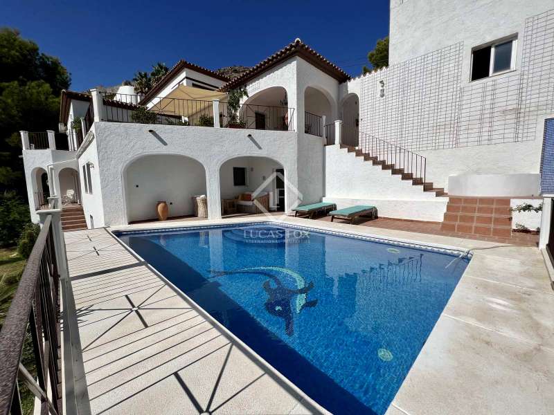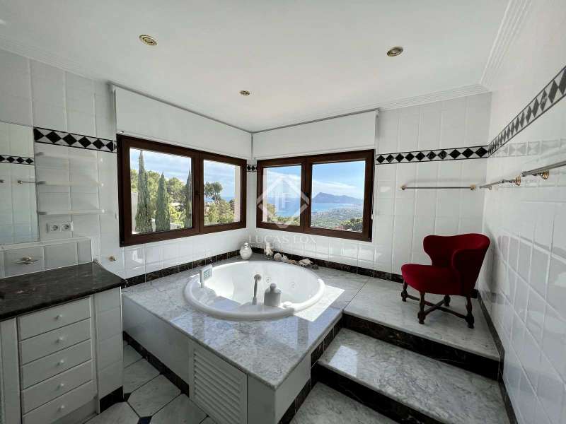 Located in the most requested area of Altea Hills, this house with Mediterranean charm has been completely renovated in a modern spirit with carefully selected materials in 2022. On the main floor, from the spacious entrance, you will be captivated by the fantastic sea view over the bay of Altea. You will have access to a spacious living room with a fireplace and then to a dining area which opens onto a very large terrace with sea view. In this designer kitchen, very functional and fully equipped, you will prepare delicious meals that you will share with family or friends under an adjoining covered terrace. On the upper floor are the master bedroom with a wood floor and its walk-in dressing room and its private bathroom which will enchant you with its bathtub enjoying the sea view. Three spacious bedrooms and 2 large shower rooms complete this floor. On the bottom floor with a separate entrance, there is a bedroom with a bathroom, a gym area, a wine cellar where you will enjoy tasting sessions among friends and a technical room with storage. At this level and surrounded by a very pleasant terrace, you can enjoy the pool area. Thanks to the optimised layout throughout, this property is ideal for receiving a large number of guests, and suitable for extended families, where everyone can maintain their privacy, offering the possibility of escaping to one of the many relaxing corners both inside and out. This villa is equipped with air conditioning and alarm. The villa is surrounded by perfectly maintained landscaped and gated grounds of 1,110 sqm, offering mature and a variety of flowers, eucalyptus, cypress trees, and fruits trees like apricot, mangos and orange, boasting spectacular sea views. In addition to being ideal for his weather, living in Altea Hills offers the comfort of being just a few minutes away from the golf course, the beaches, two ports where luxury boats are moored, and the palm-lined seafront esplanade, a wonderful place for spending evenings out for a dinner or a drink on one of the many terraces. Altea is famous for its blue domed church, the historic centre of the city offers many great restaurants, cafés and handicraft shops that are peppered throughout the cobbled streets where you will also often find painters and artists of all kinds at work, inspired by the beauty of the town. The closest airport to Altea is in Alicante, 60 km away, and the A7 motorway connects the town of Altea to the rest of the country.