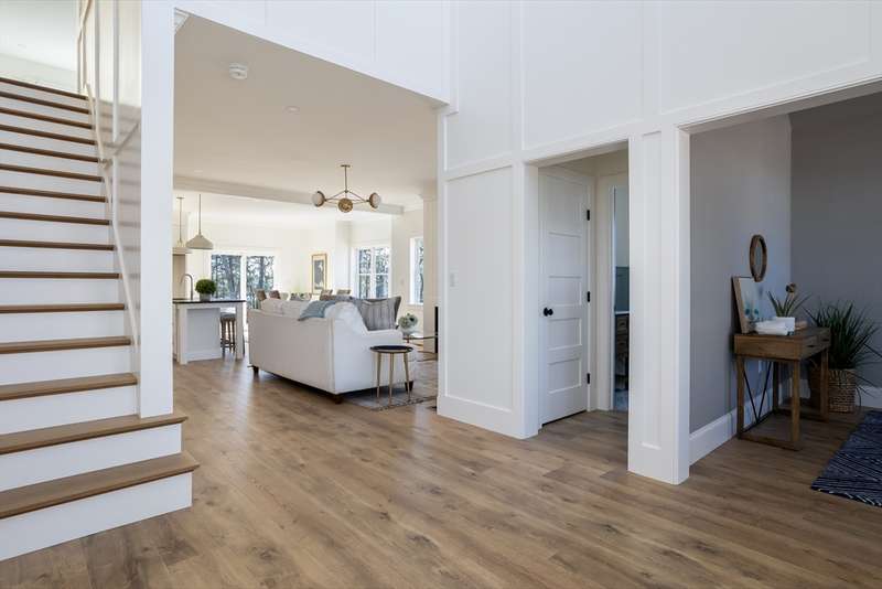 Welcome to this brand-new Modified Cape home views of Long Pond from the back yard and upstairs balcony. This home has semi-custom design features throughout, selected by the builder’s in-house designer. The beautiful 2-story entry and first floor powder room have Board & Batten patterned walls and the living room fireplace wall has nickel gap to add more texture and interest. The kitchen has warm white cabinetry, black leathered granite countertops, stainless steel appliances and a beautiful pantry. The spacious first floor master suite has a stunning bathroom with a double vanity, floor to ceiling tiled shower and a walk-in closet. The second floor has two more bedrooms, a full bathroom and an additional family room. Quality laminate flooring runs through the entire home and different light fixtures were selected for each room while keeping a cohesive design throughout.